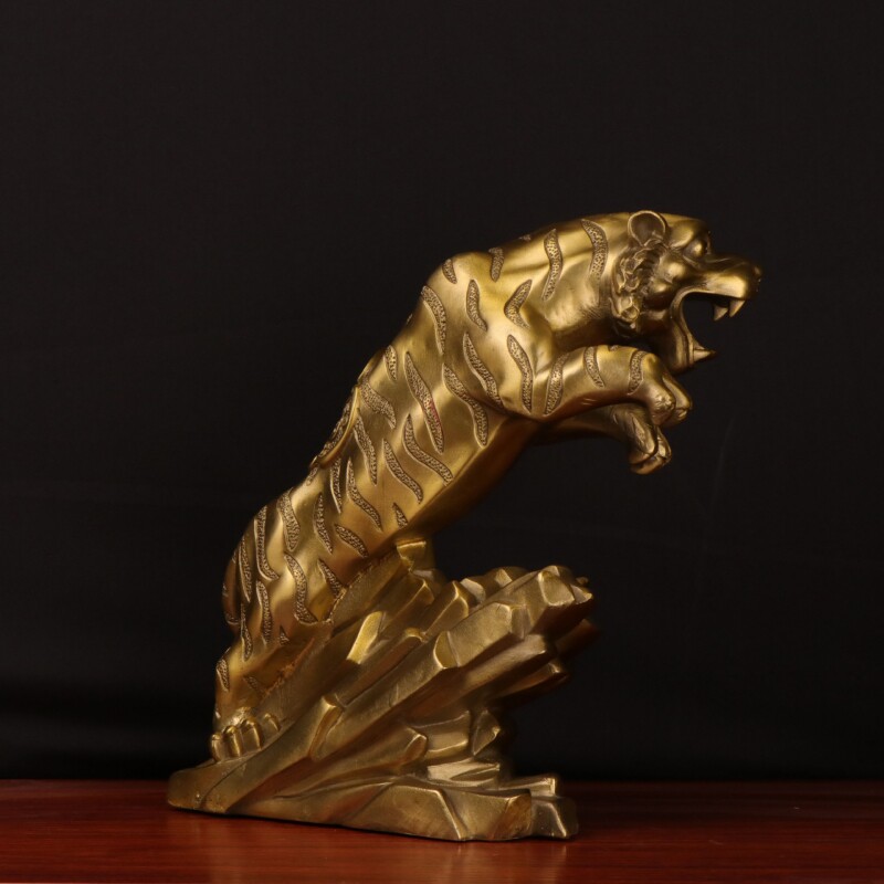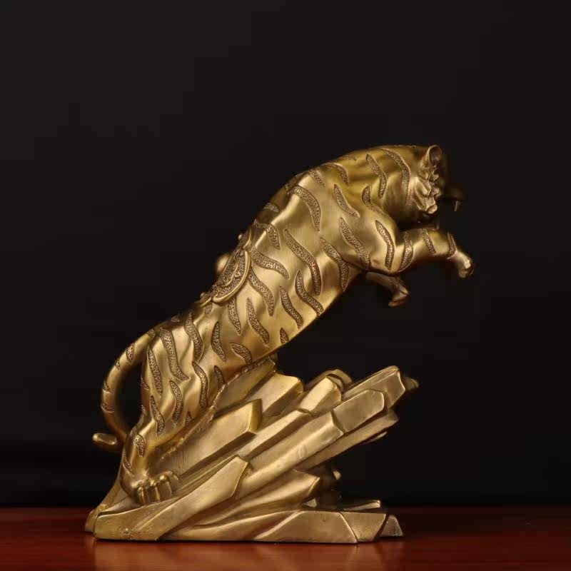 虎啸山河摆件纯铜上山虎 十二生肖虎 下山虎工艺品 黄铜老虎摆设