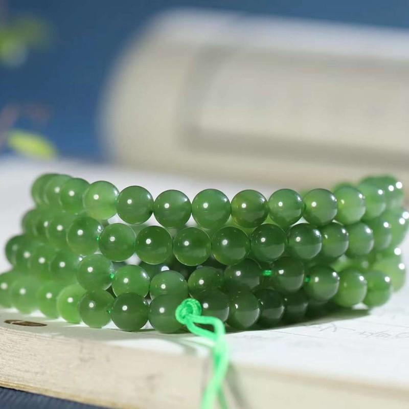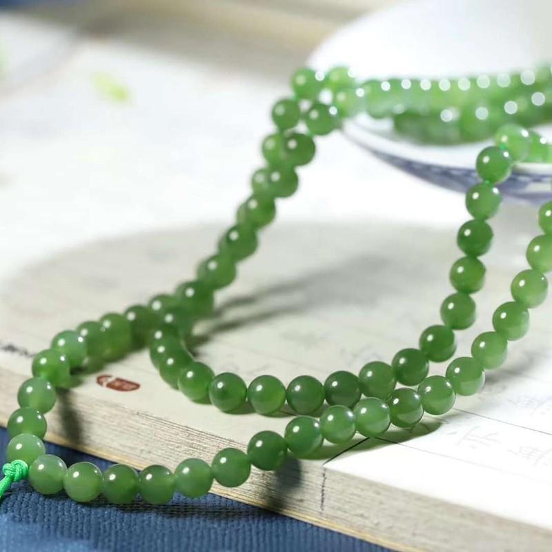 玉器工艺品天然新疆和田玉俄料碧玉老料阳绿色108珠链多用款送证