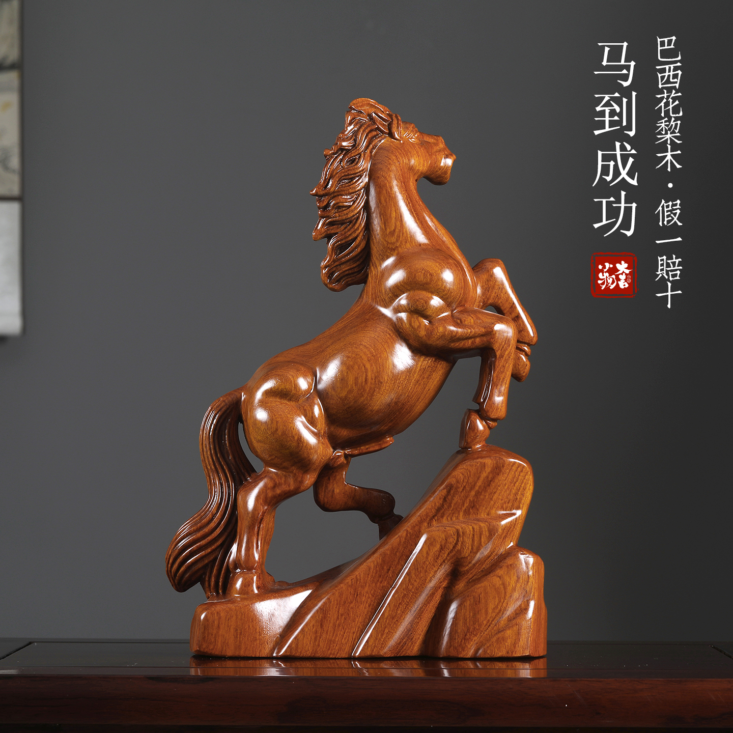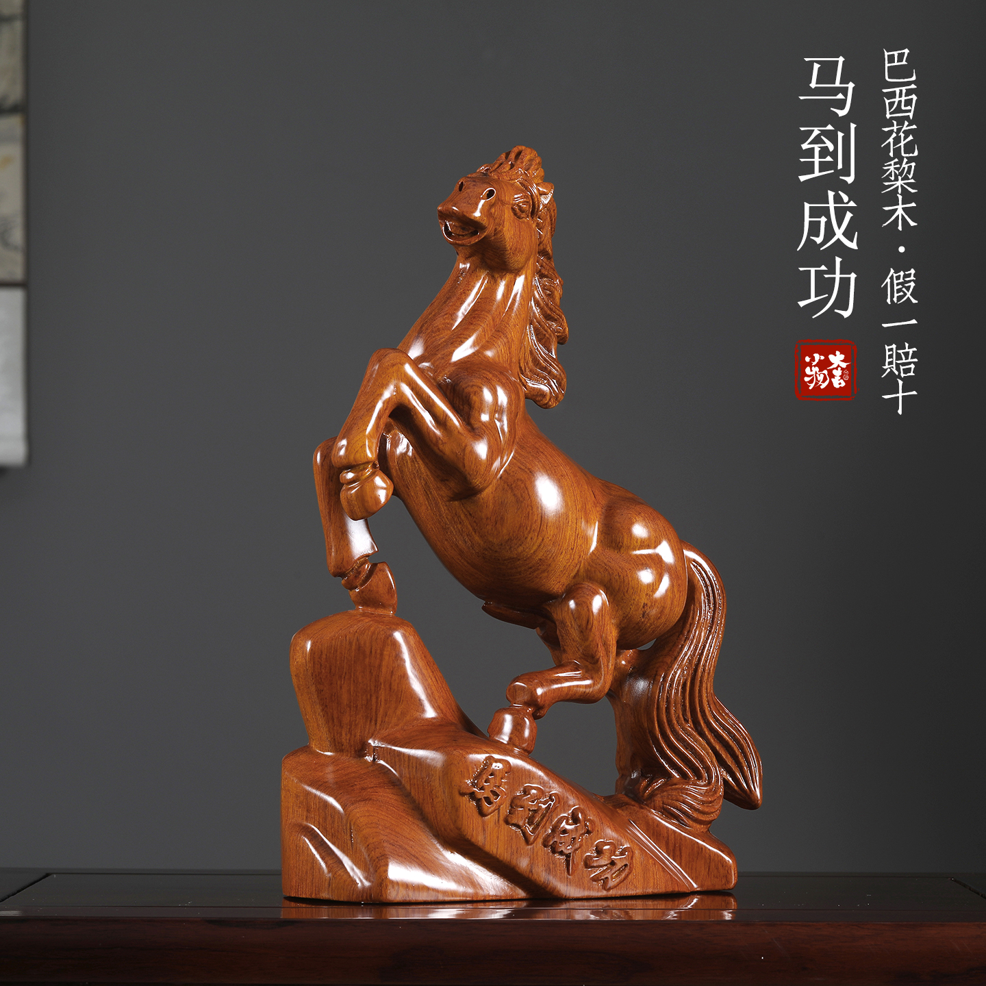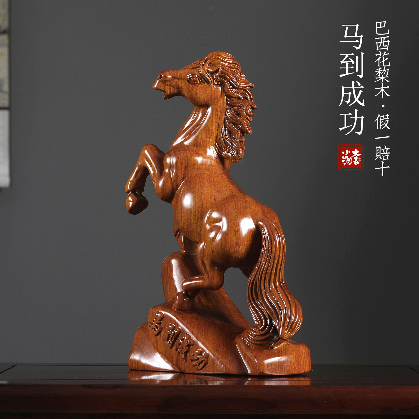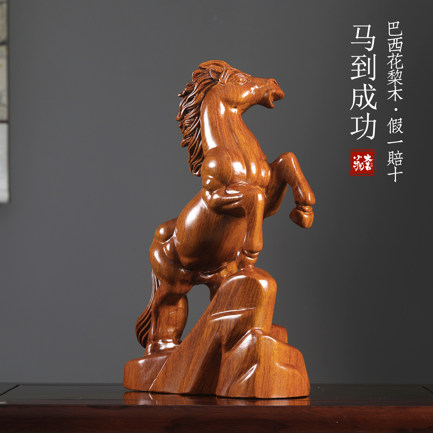 巴西花梨木实木雕刻马摆件十二生肖马到成功办公室开业装饰工艺品