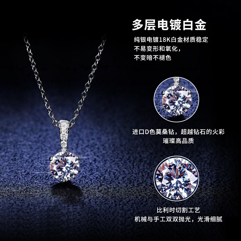 A STAR莫桑石18K白金项链女不掉色纯银钻石吊坠轻奢高级生日礼物