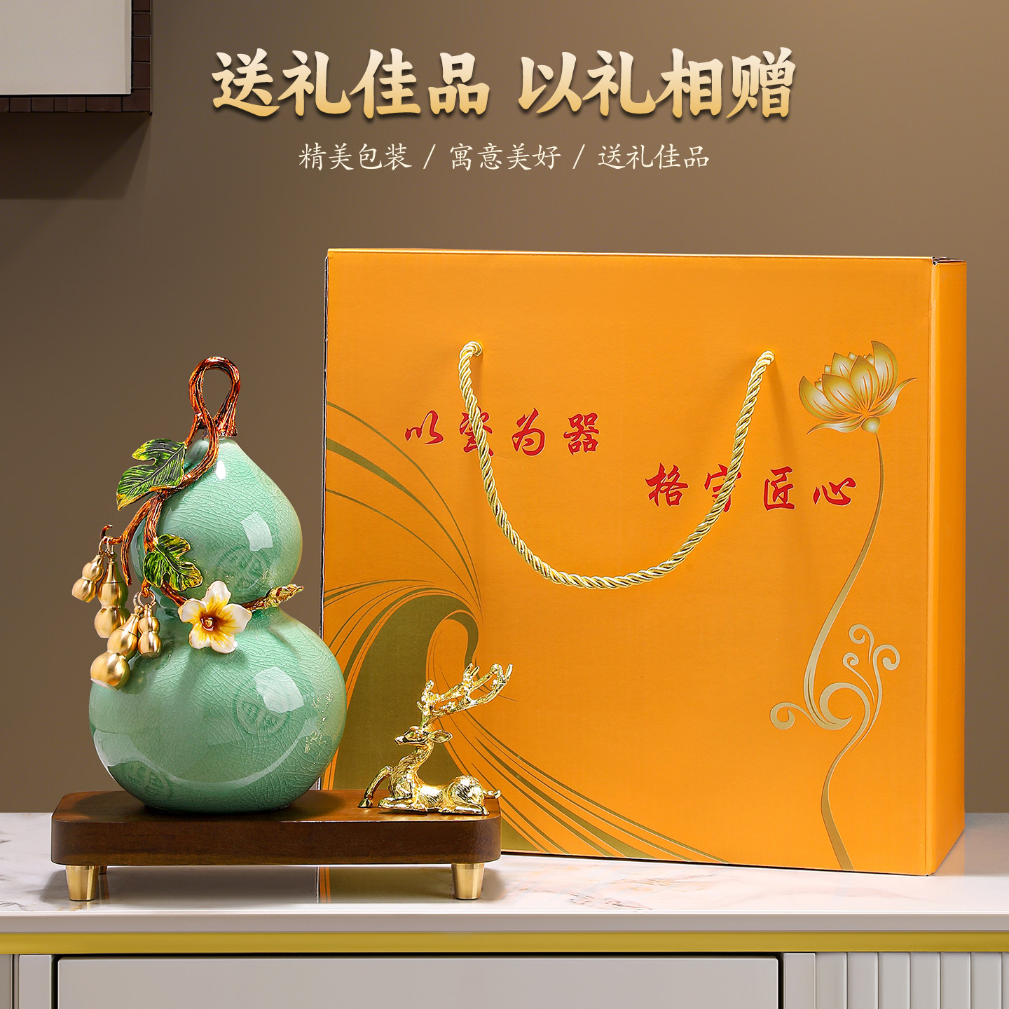 福禄双全珐琅彩陶瓷葫芦摆件招财新中式高档客厅电视柜酒柜装饰品