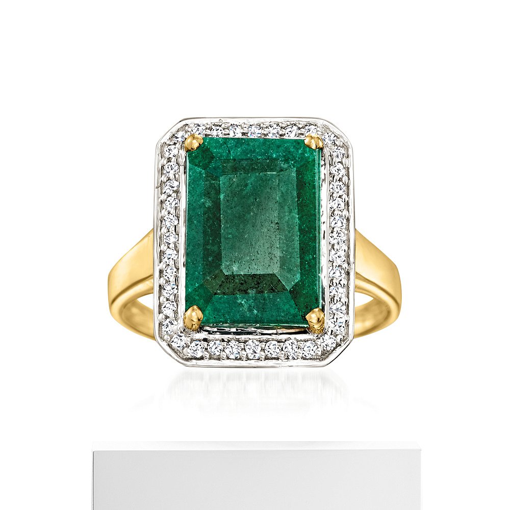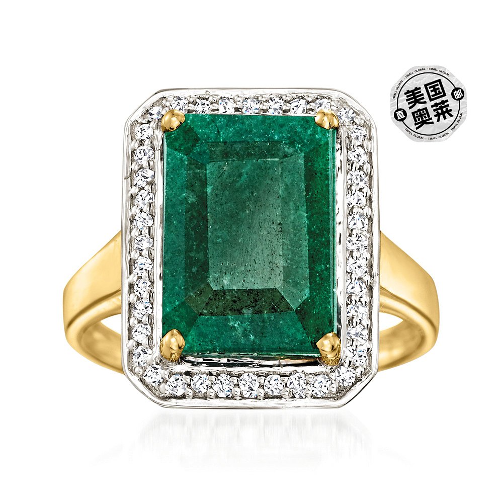自营 ross-simons罗斯-西蒙斯翡翠和 . 14 克拉黄金钻石戒指 绿色