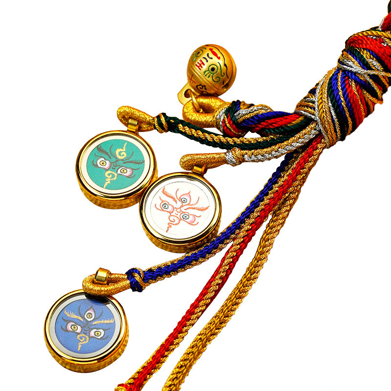 新非遗五路财车挂尼泊尔手绘唐卡画吊坠藏式手编金彩绳车挂坠