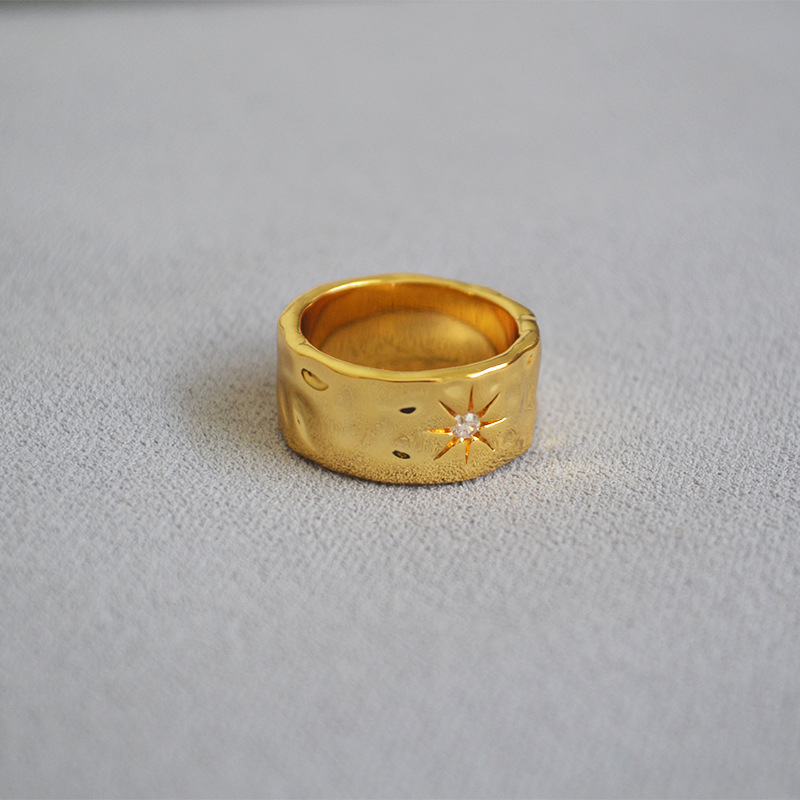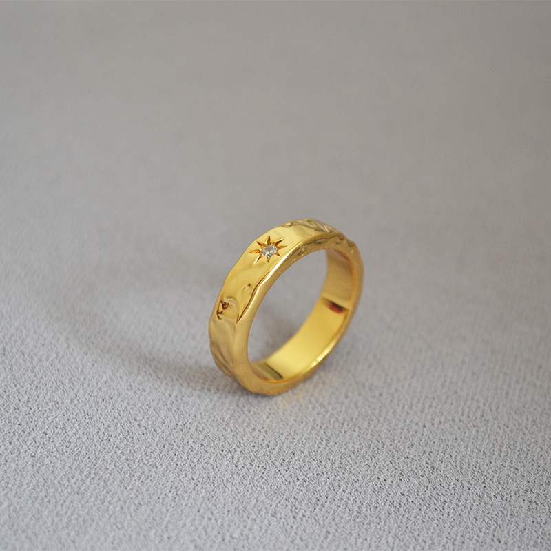 欧美原创小众设计凹凸水波纹黄铜镀金食指戒质感简约北极星戒指女
