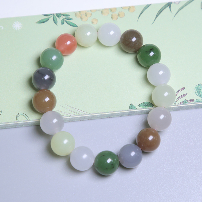 珪宝和田玉圆珠多宝手串直径12mm男款多彩手链天然玉石女士带证书