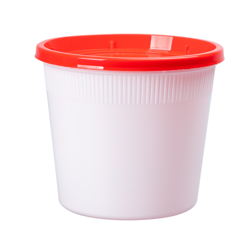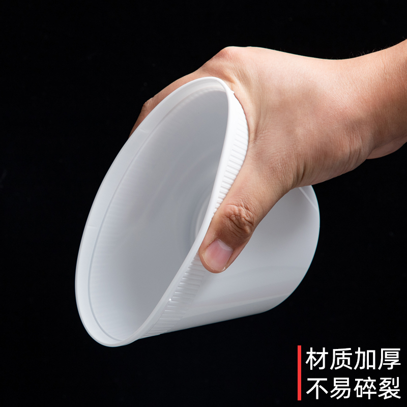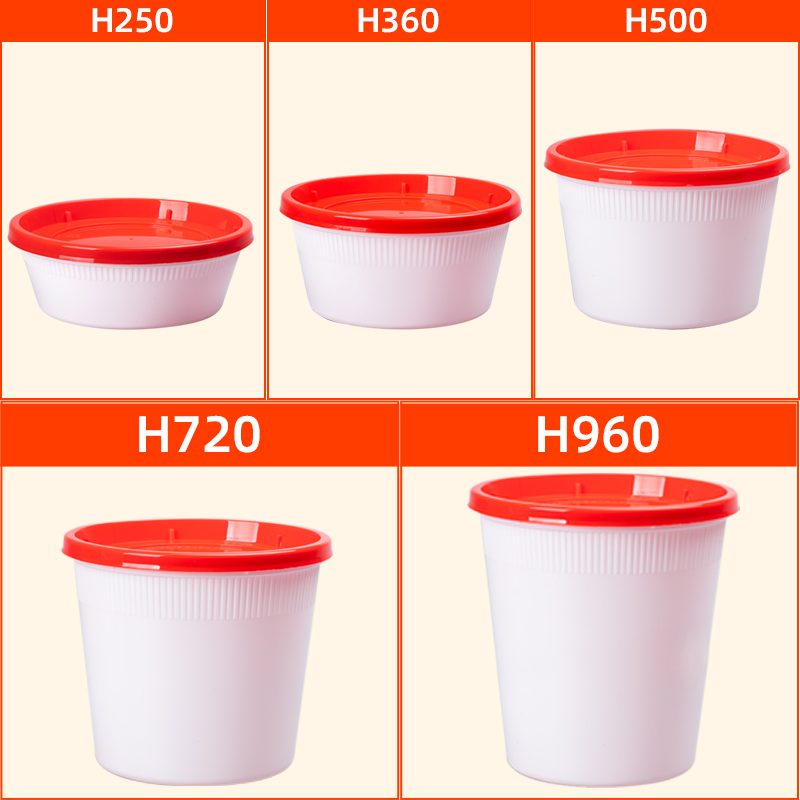 一次性塑料快餐盒白色圆形汤碗加厚带盖外卖便当打包盒500可微波