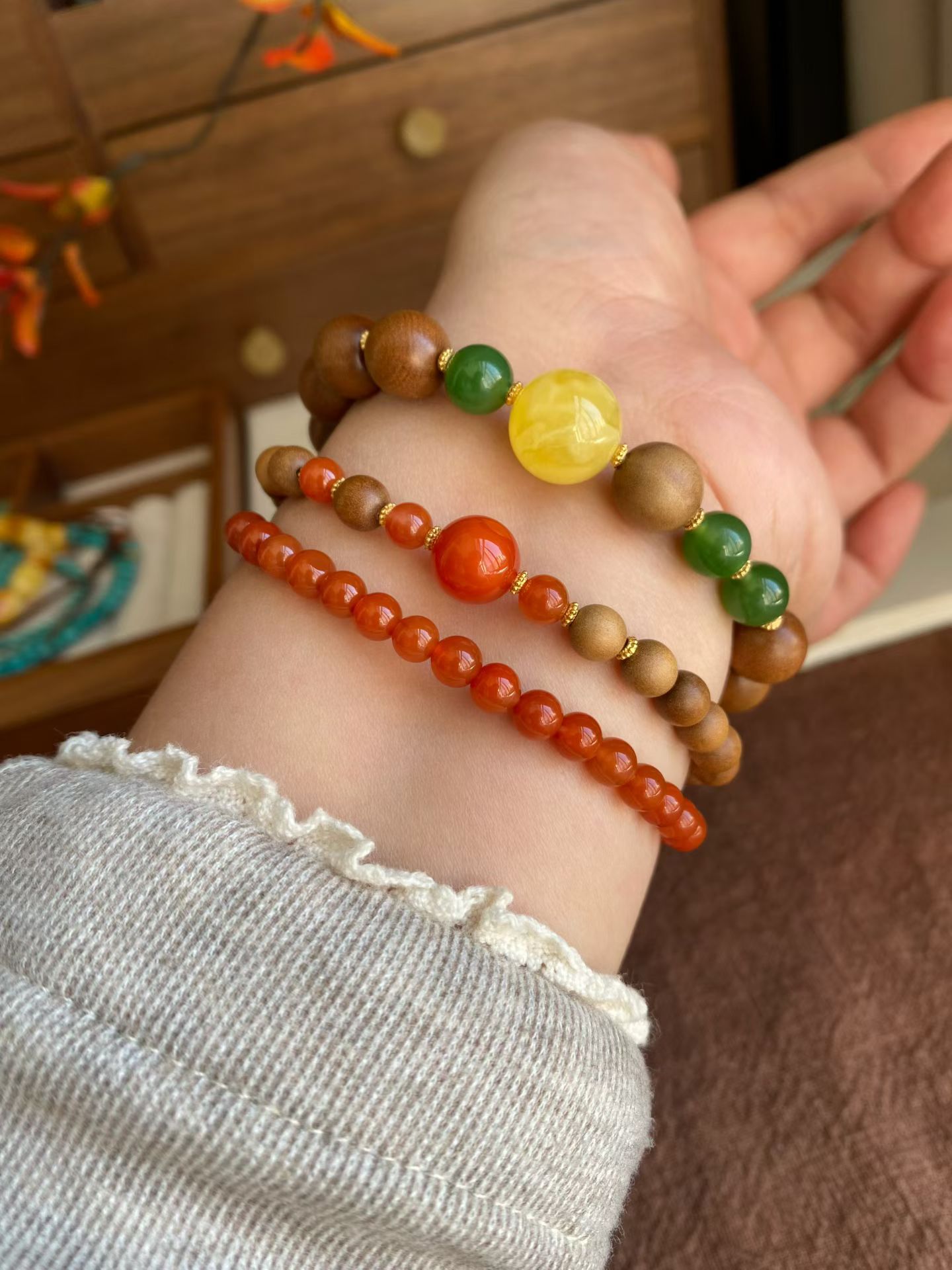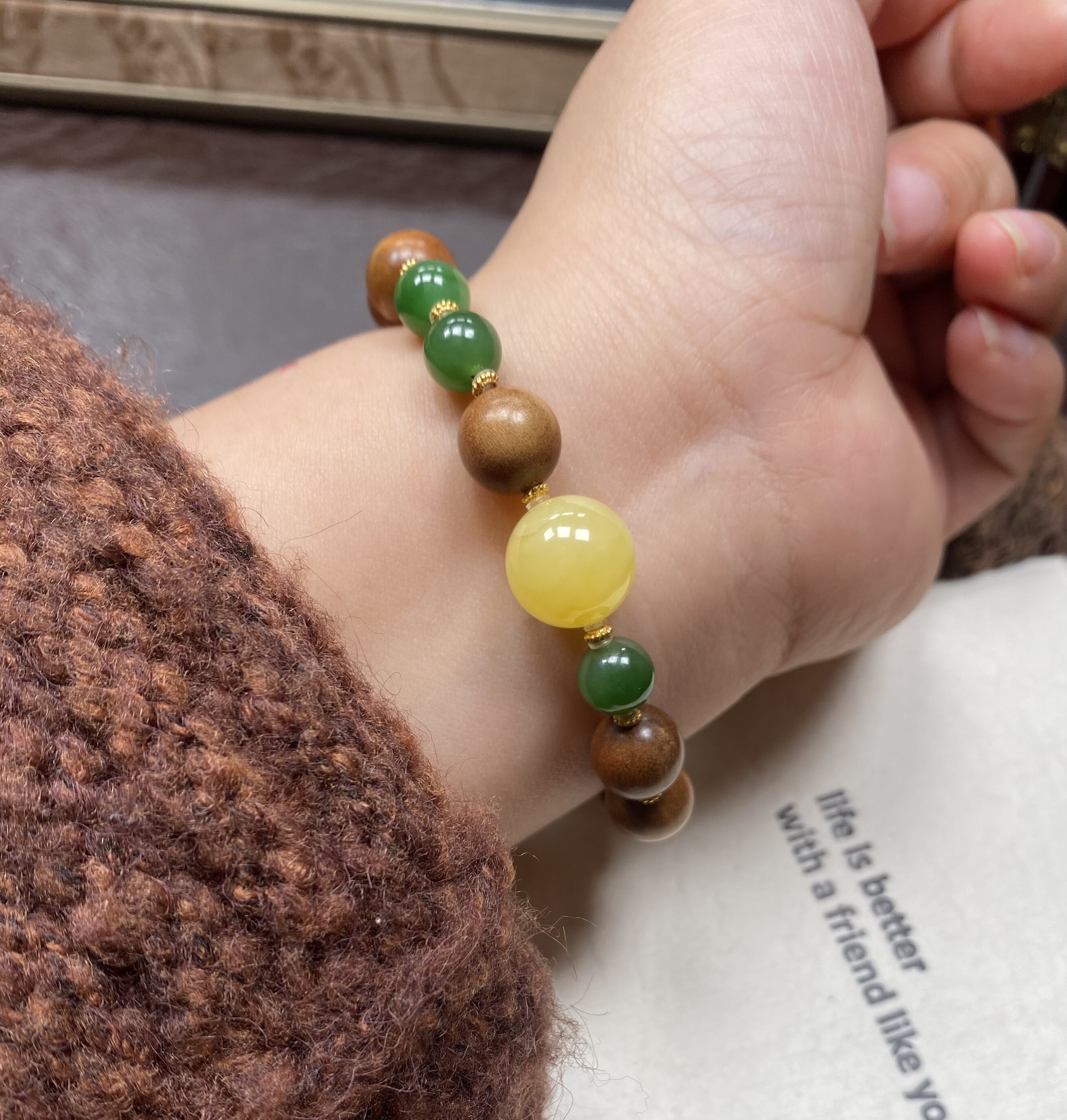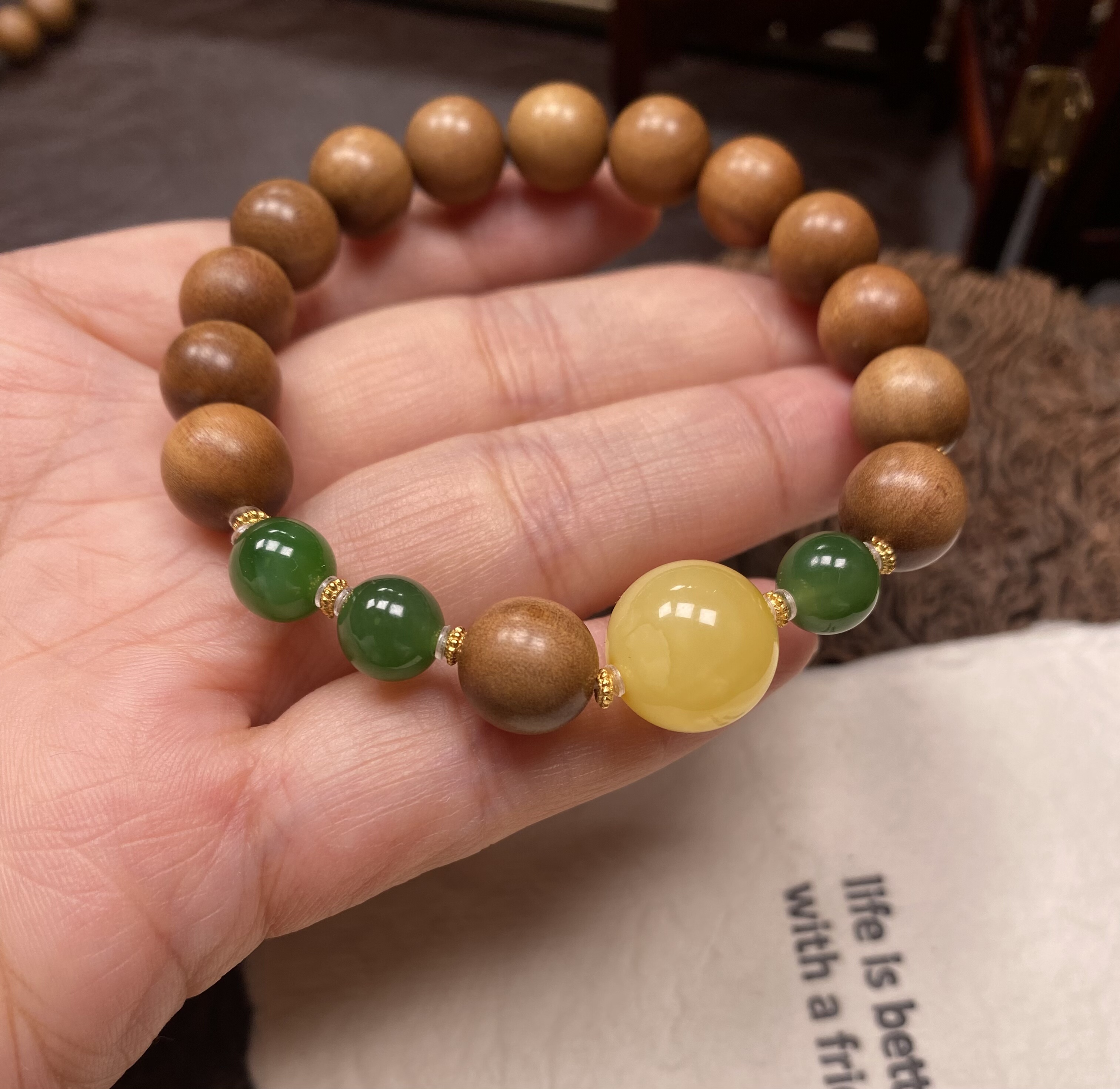 天然印度迈索尔老山檀原创设计手串女款碧玉纯银和田玉手链新中式