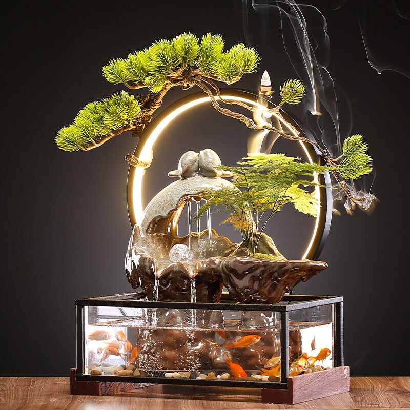 招财流水生财摆件创意喷泉循环水车鱼缸家居办公桌面开业乔迁礼品