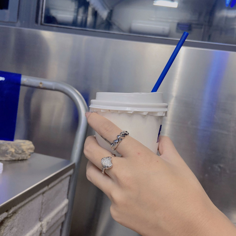 Witther原创抽象花朵戒指小众设计不对称肌理冷淡风男女开口戒指