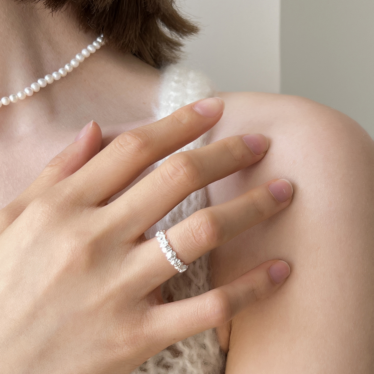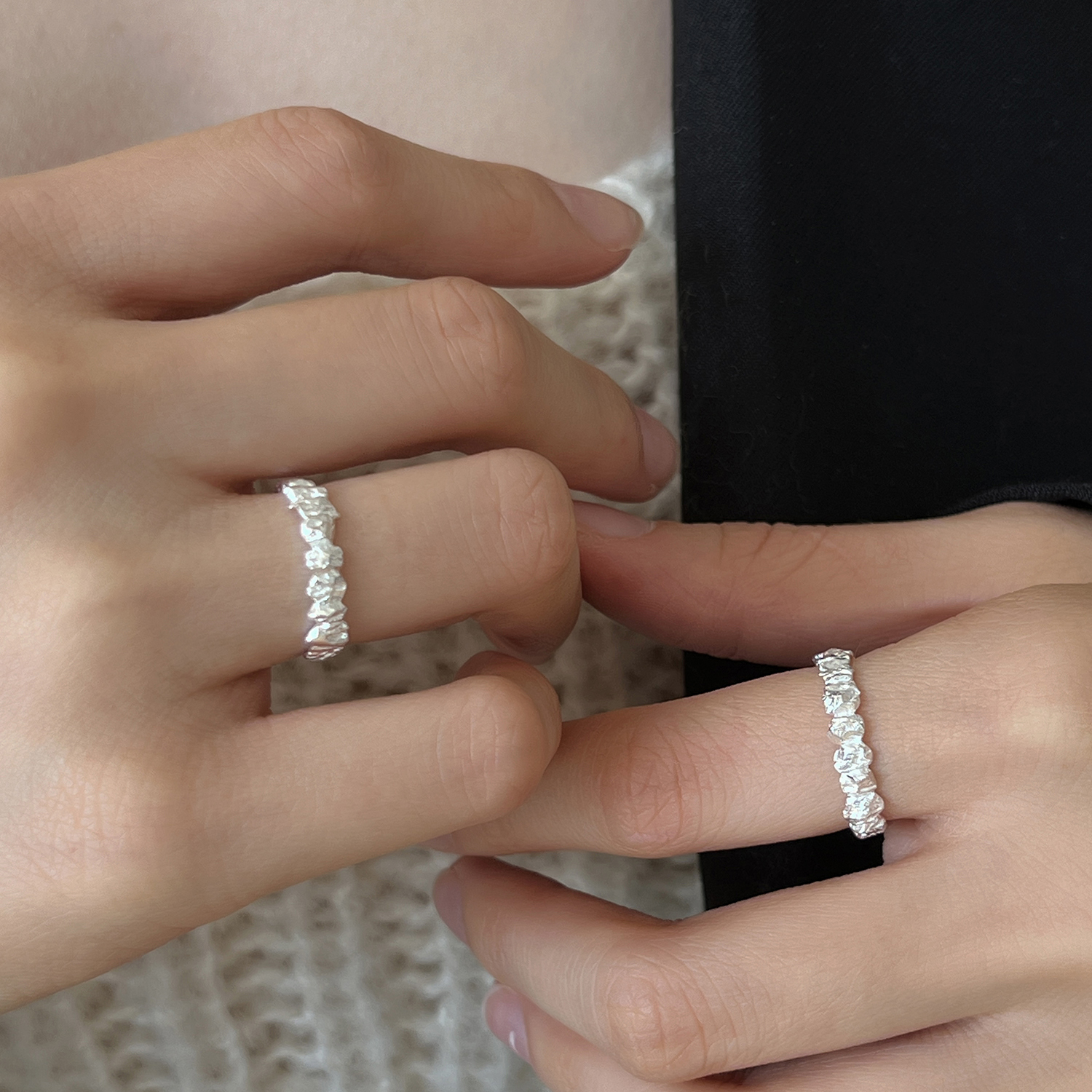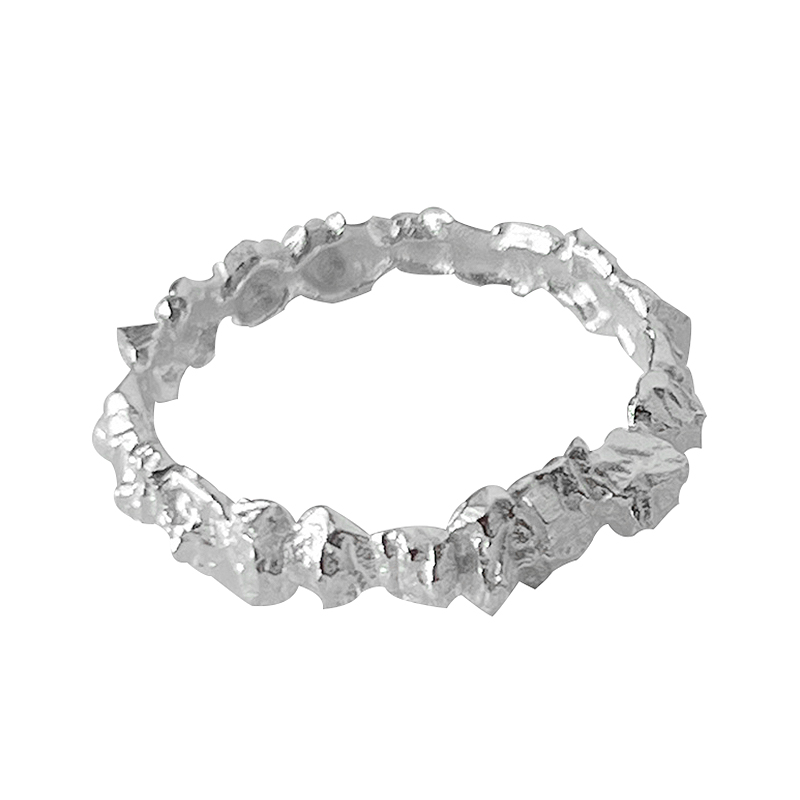 S925纯银戒指女款个性时尚肌理闭口戒指冷淡风小众设计纹理指环潮