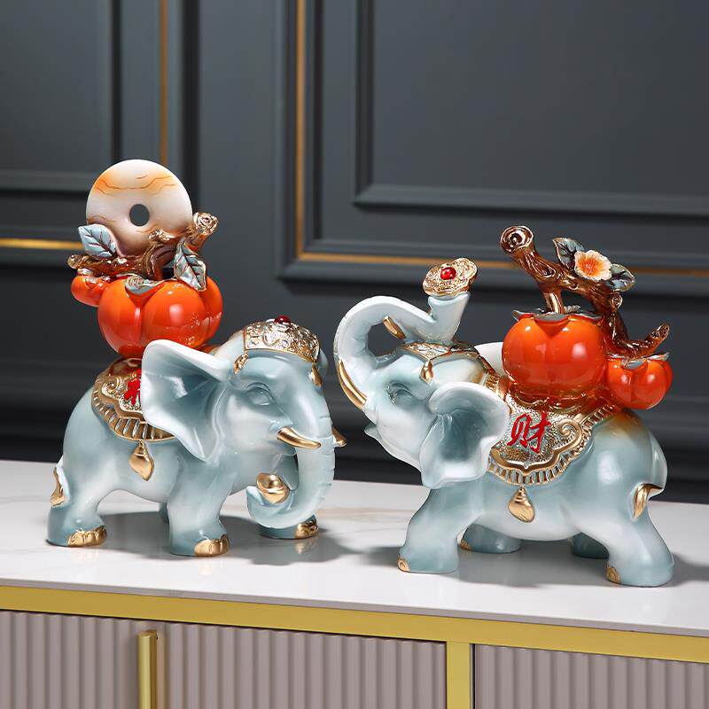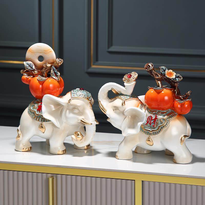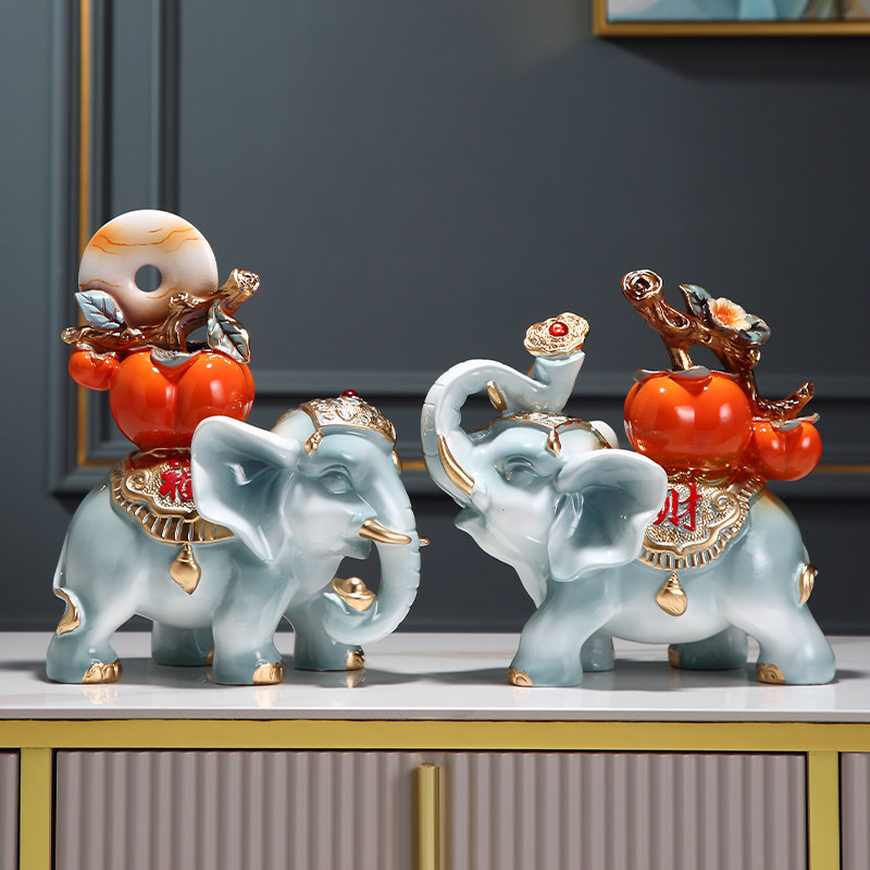 柿柿如意财福大象新中式创意装饰客厅玄关大象摆件一对家居装饰品