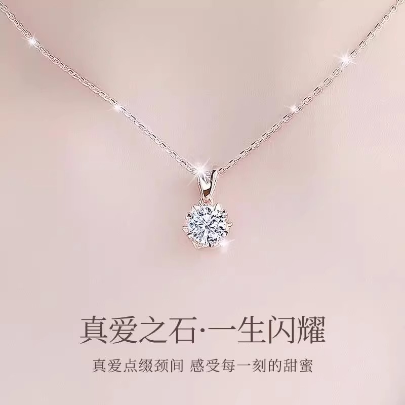 I Do 铂金PT950雪花钻项链女一克拉天然单钻吊坠情人节送女友礼物