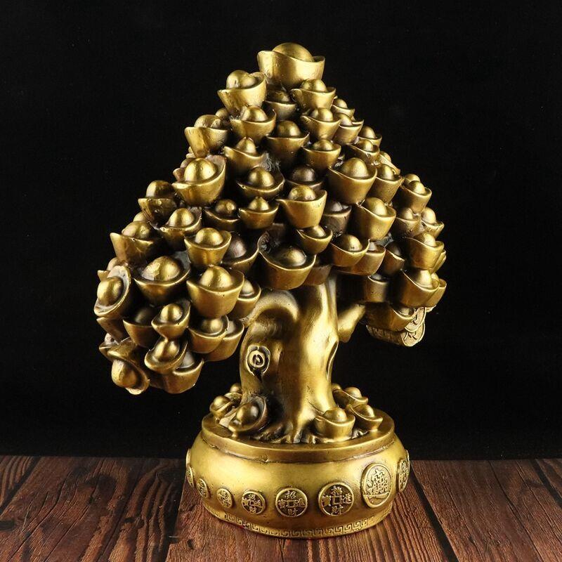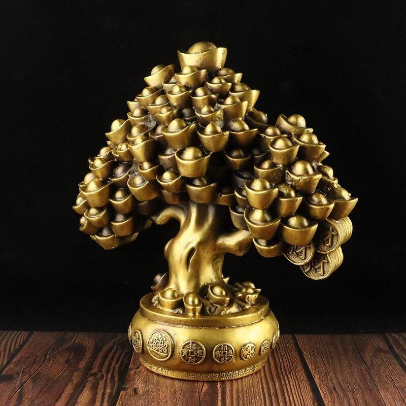 全铜发财树酒柜装饰摆件家居客厅办公室工艺品摆设创意摇钱树中式
