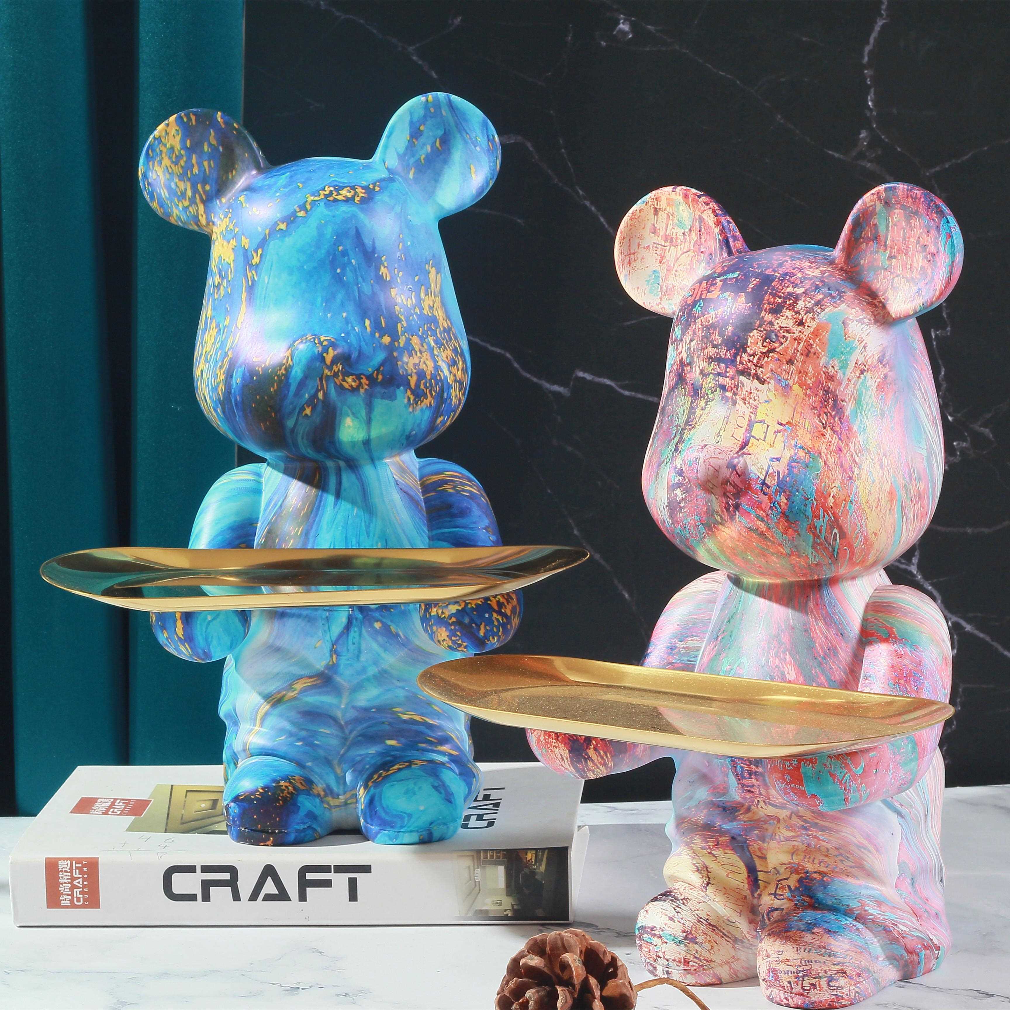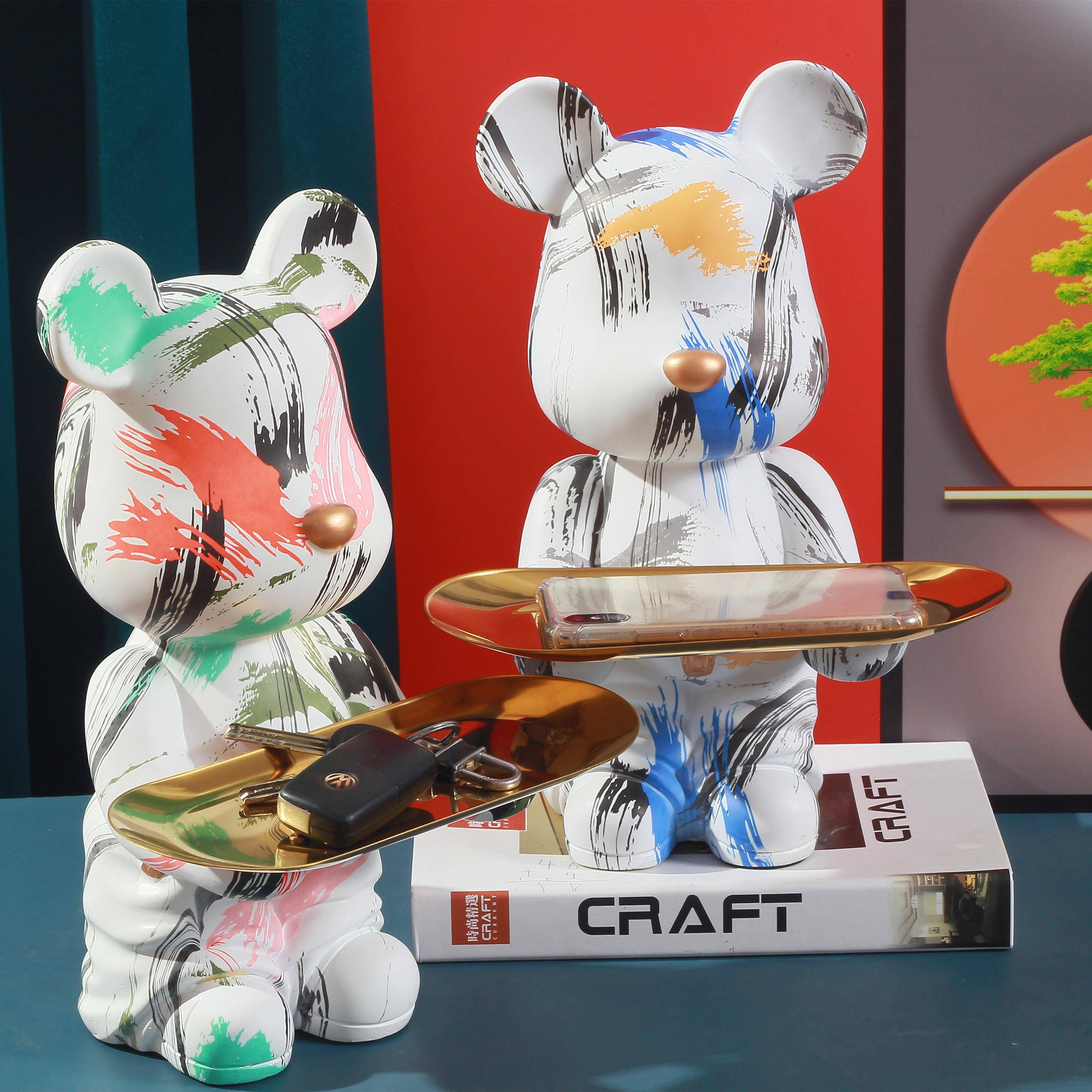 北欧轻奢简约桌面创意树脂卡通熊进门玄关钥匙收纳存钱罐入宅摆件