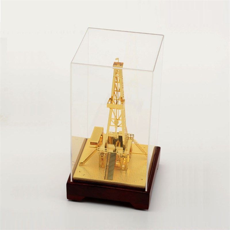 油田钻井机模型实木精致底座金属摆件油田礼品纪念品油田井架定制