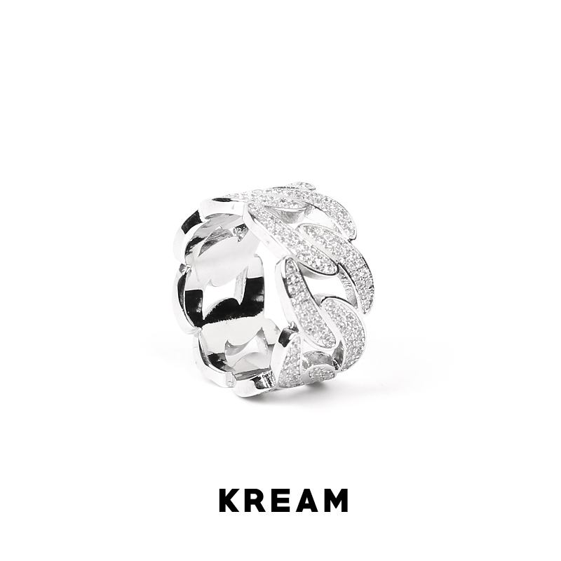 Ice out Cuban link ring镀白金银色镶满钻古巴链戒指男女 高品质