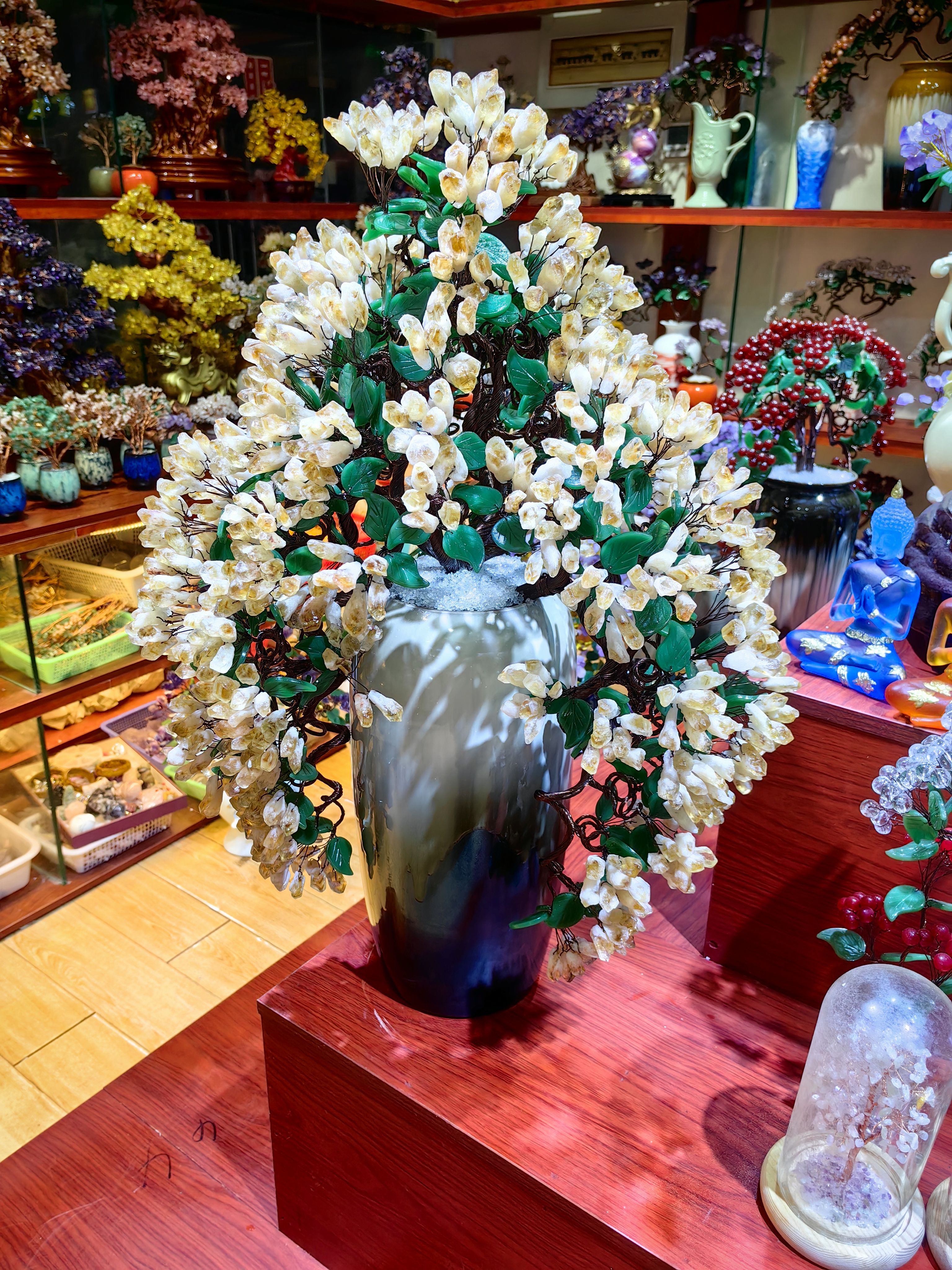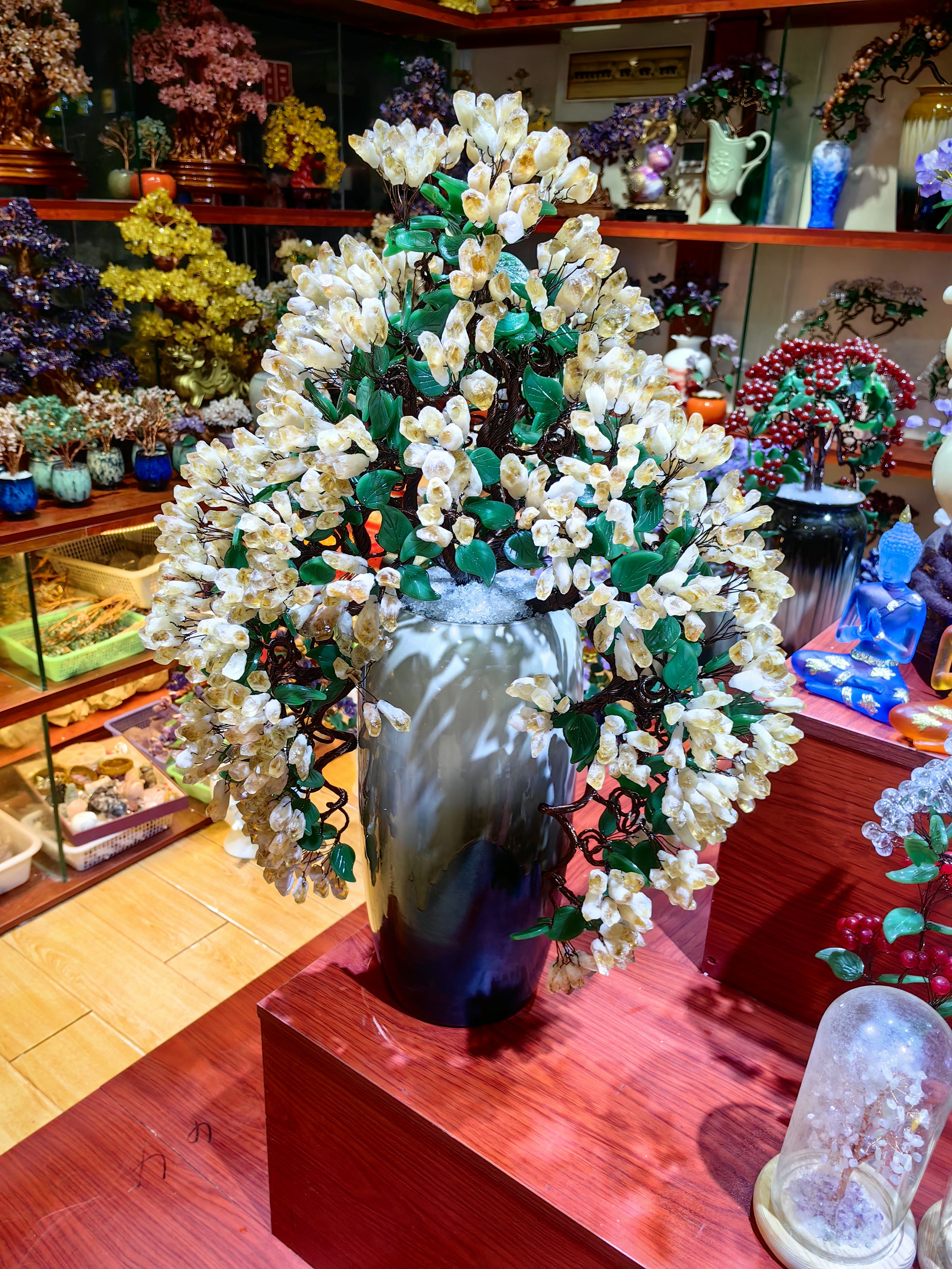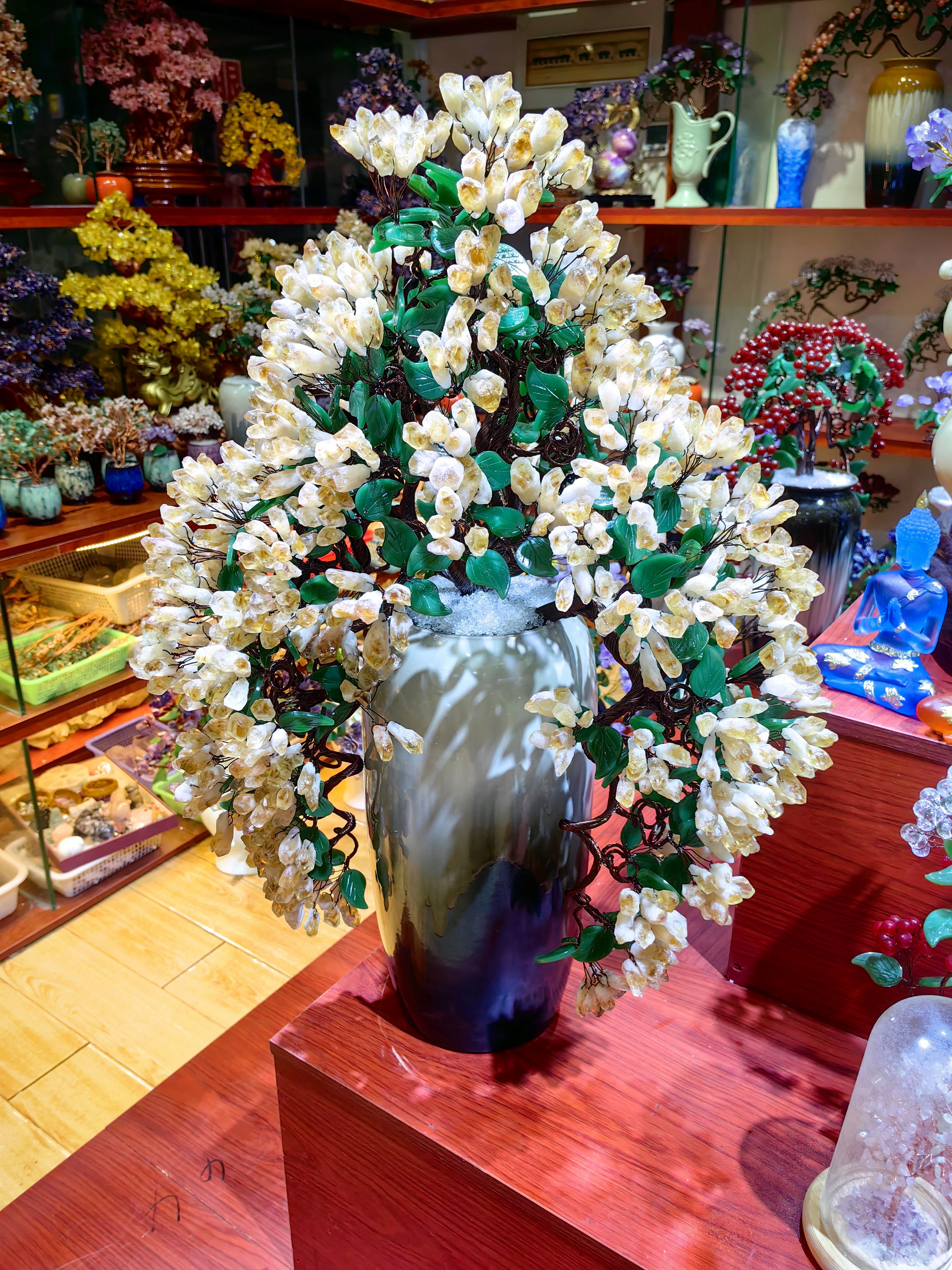 2025新款天然黄水晶发财树摇钱树别墅客厅招财摆件高档招财陶瓷瓶