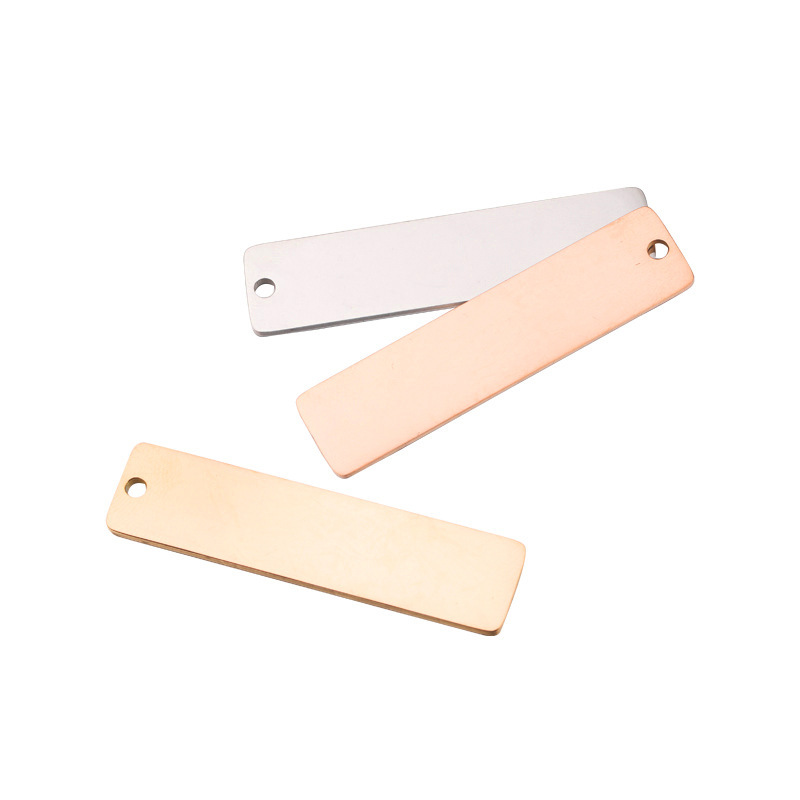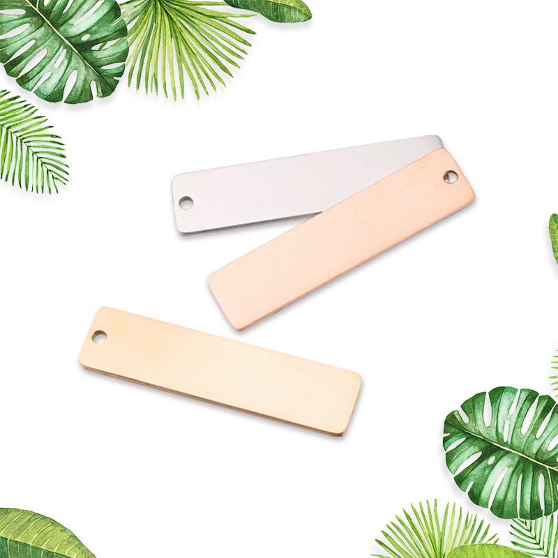 跨境12*50MM镜面钛钢单孔长方形长条吊坠挂件DIY腐蚀刻字钥匙扣