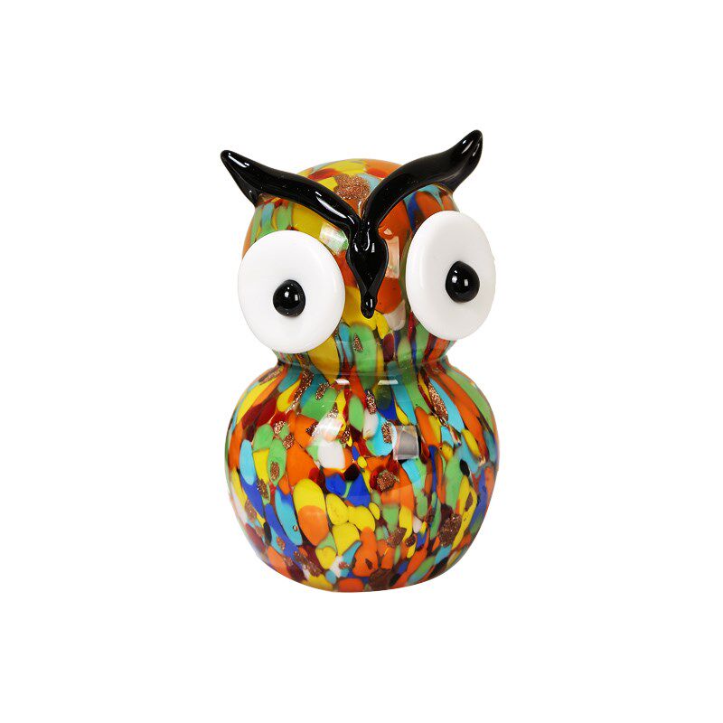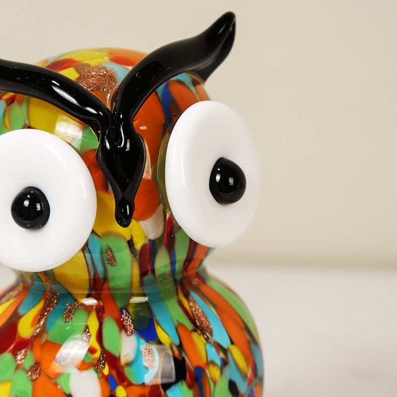 彩色猫头鹰动物琉璃艺术可爱摆件设计师款客厅酒柜样板房桌面装饰