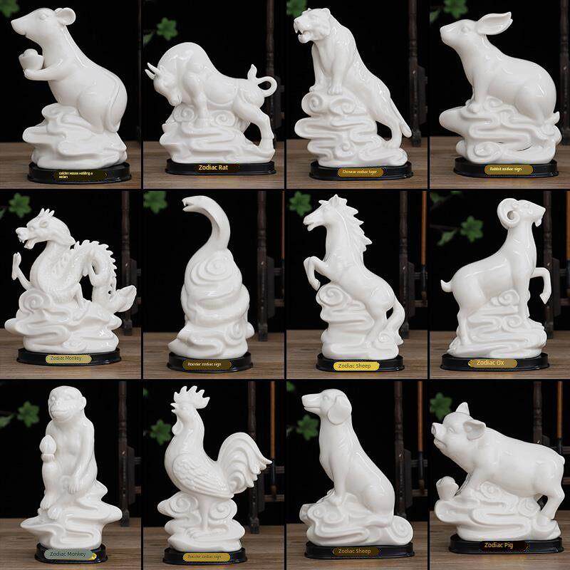 陶瓷十二生肖摆件白色全套鼠牛龙蛇马羊猴鸡狗猪客厅招财风水家居