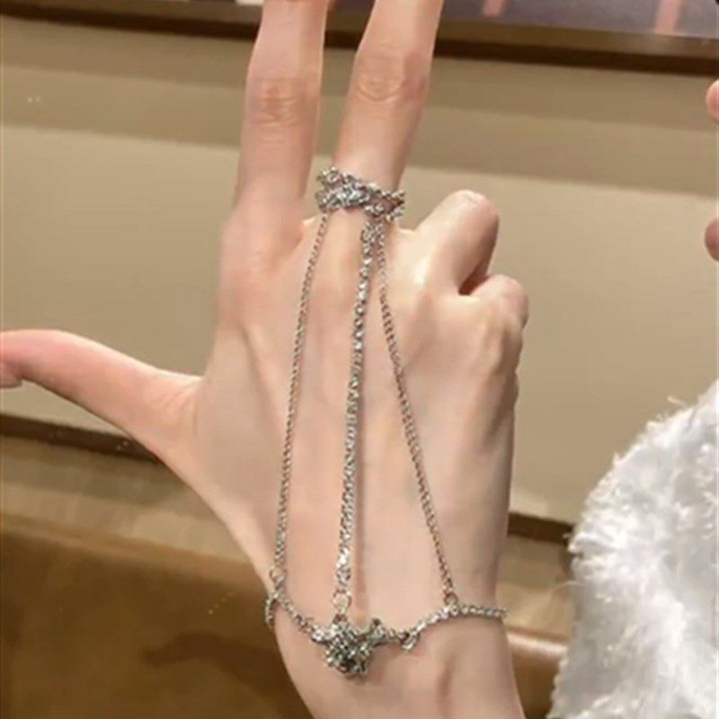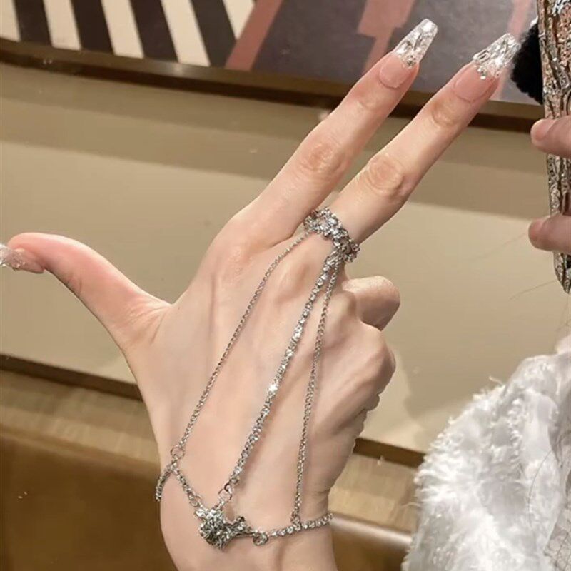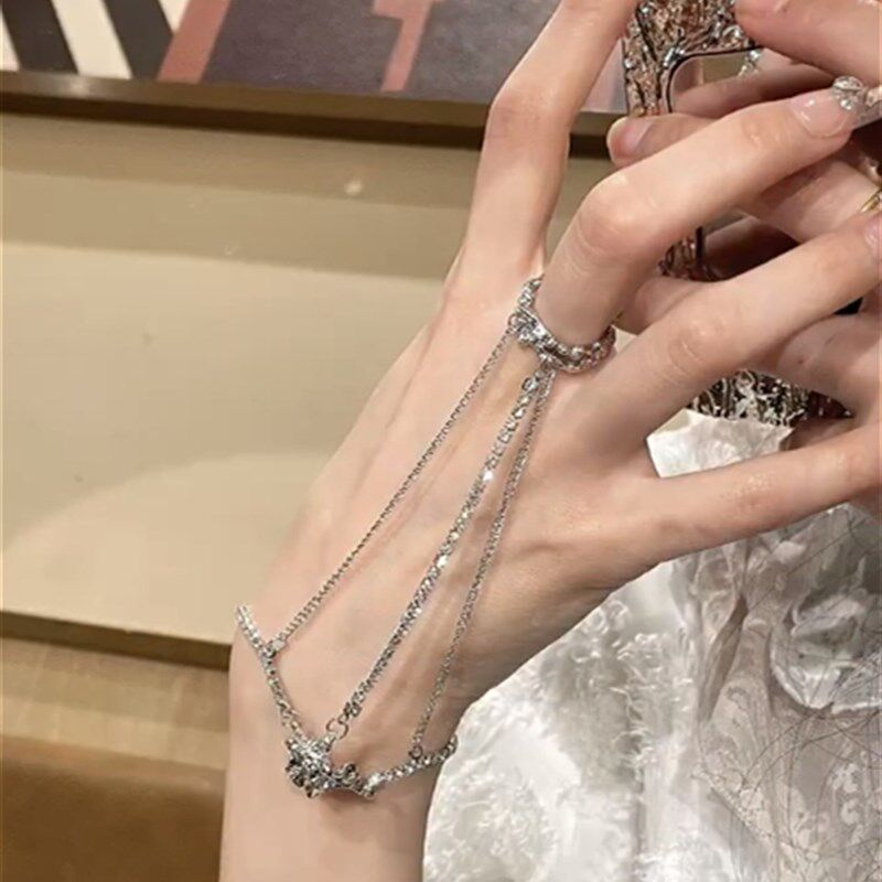 zoozbmomo欧美轻奢锆石一体式链条开口手链戒指高级感满钻辣妹手