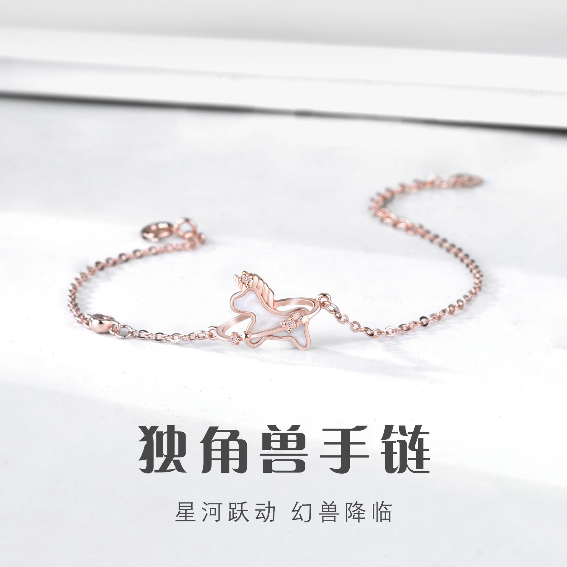 原创s925纯银梦幻独角兽手链女ins风小众创意设计感生肖马手饰品