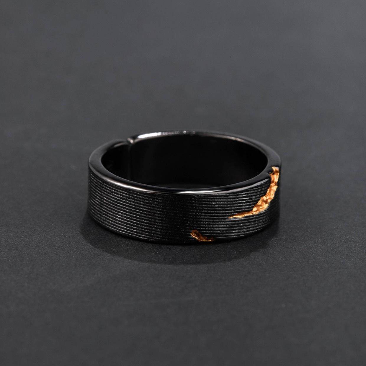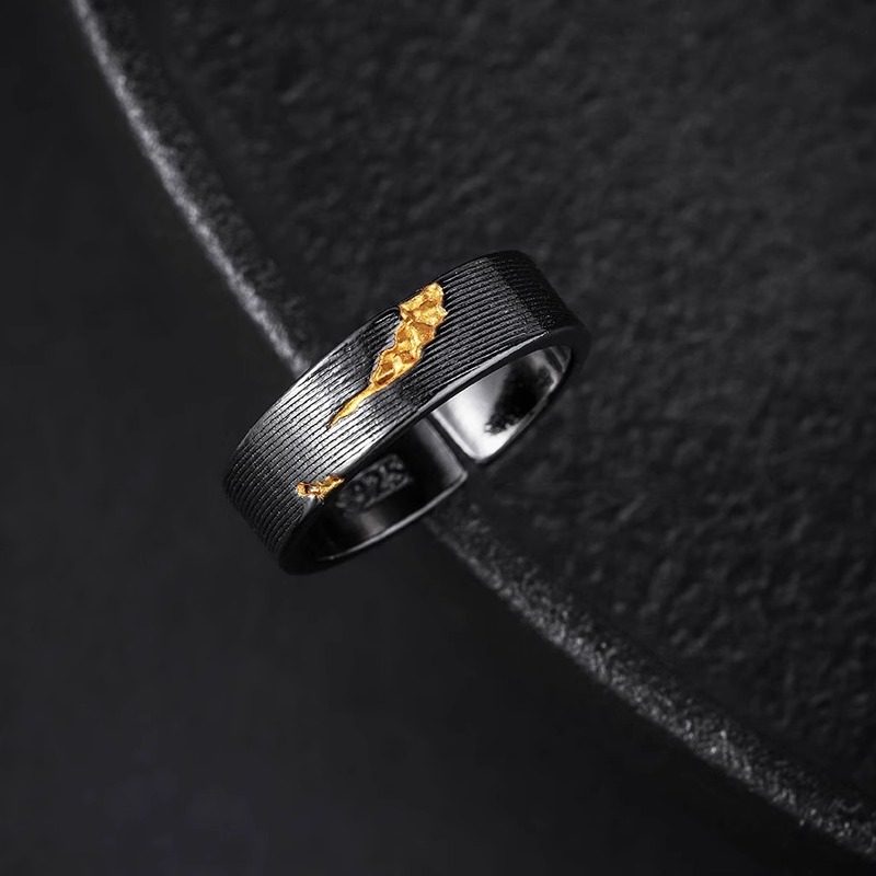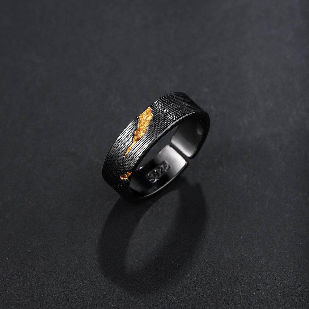 S925纯银光痕戒指男款新款时尚小众食指环高级感复古黑色潮流百搭