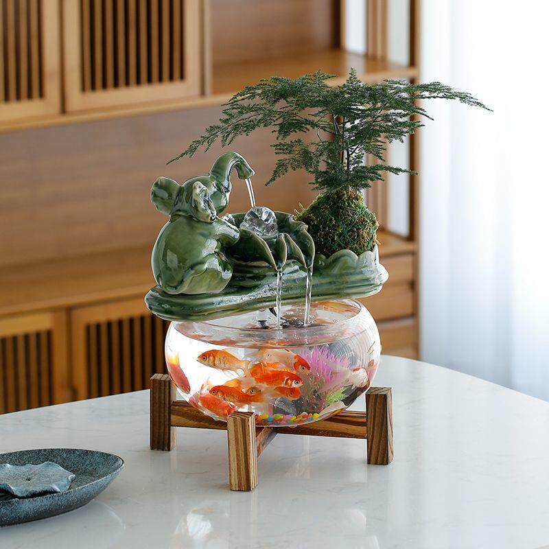循环流水生财玻璃Ca/PcFd3鱼缸家居客厅电视办柜装饰礼公招财摆件