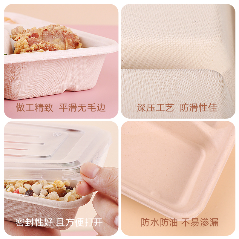 一次性餐盘托盘食品级多格可降解纸浆餐盒三格四格五格外卖打包盒