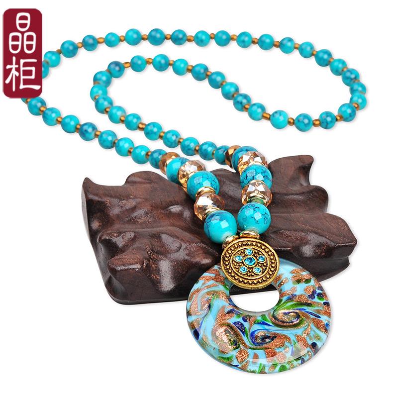 民族风琉璃新中式国风项链女毛衣链长款大气旗袍配饰吊坠古风饰品