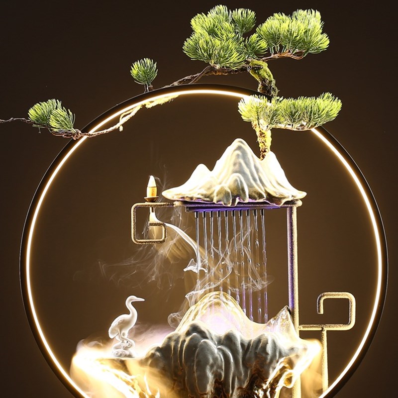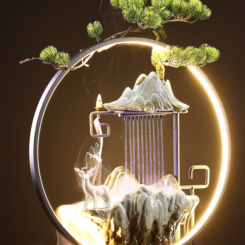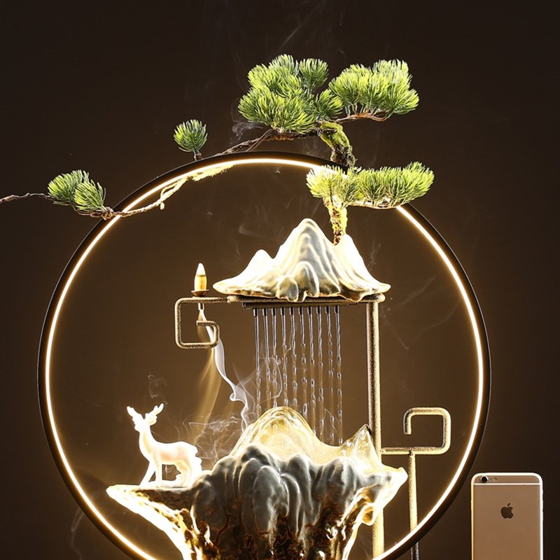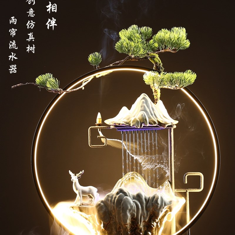 现货速发流水摆件灯圈喷泉景观陶瓷招财客厅办公室桌面创意装饰品