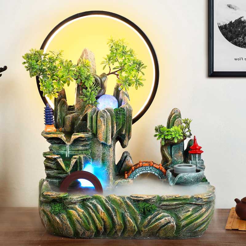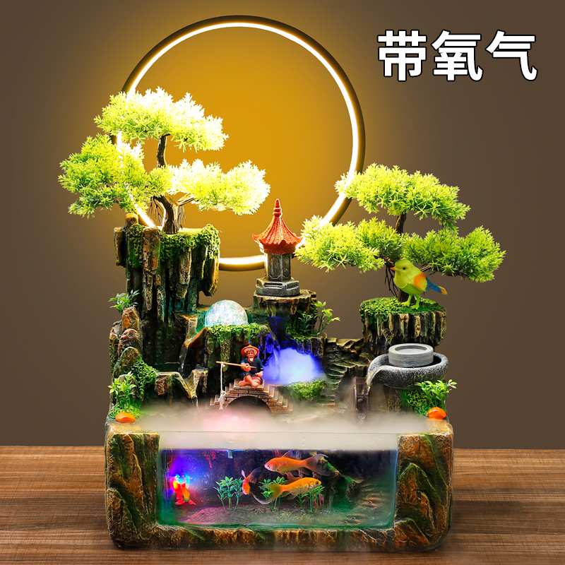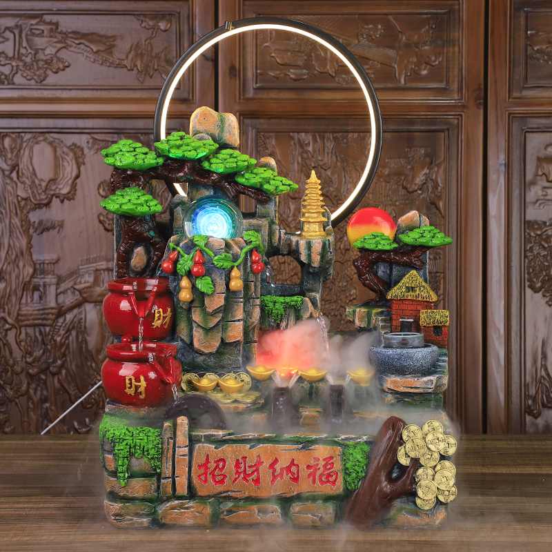 假山流水喷泉招财山水摆件客厅鱼缸风水轮生财水景循环水开业礼物