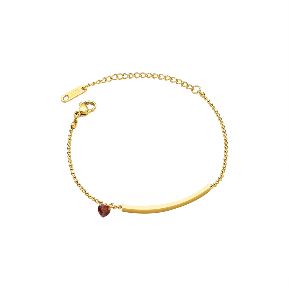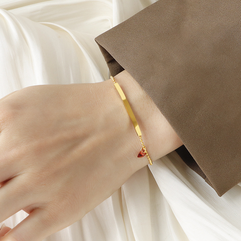 2024新年开运红色爱心光面条形简约手链钛钢镀18K金饰品法式气质