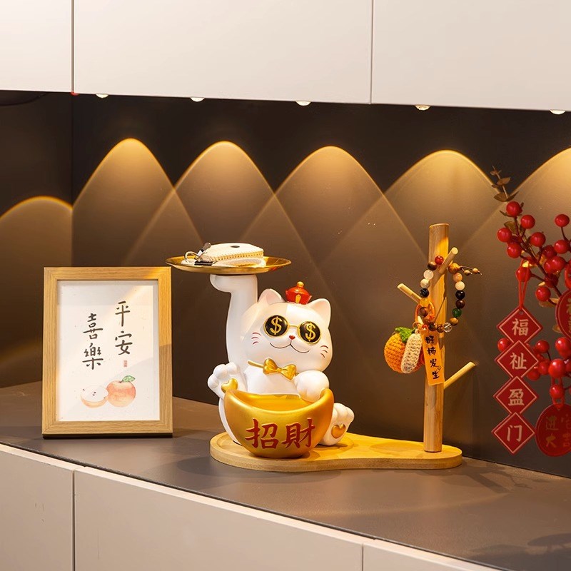 速发招财客玄关摆件收纳入户门口鞋柜装饰品猫新财运乔迁厅居礼品