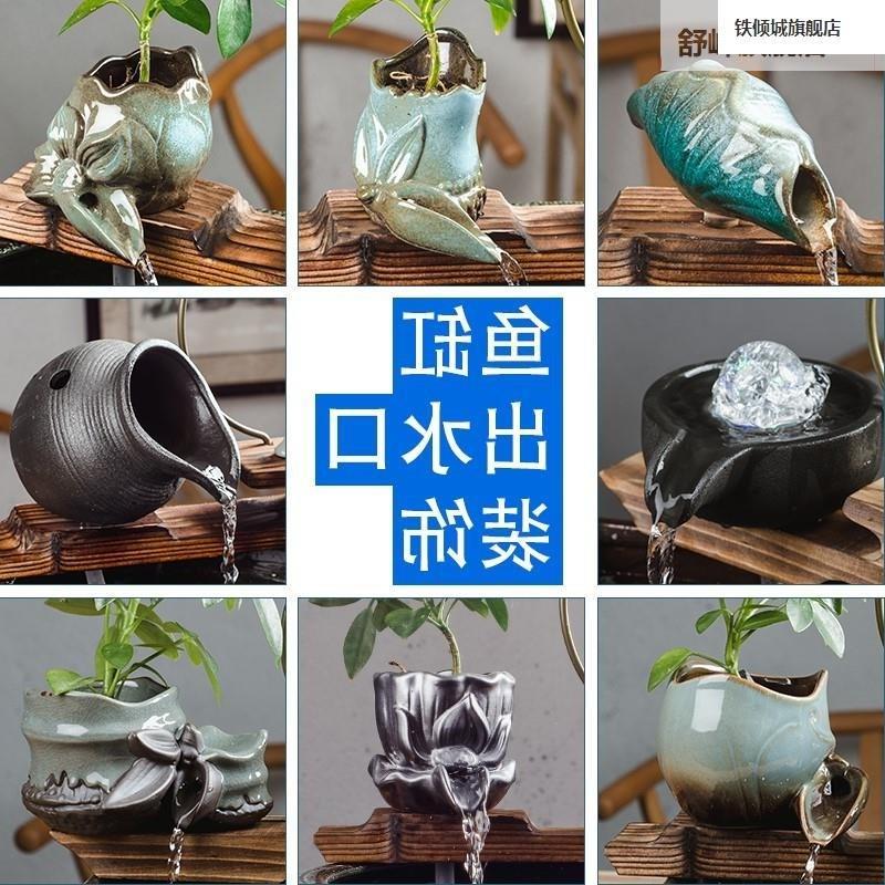 中式陶鱼山缸循环小号自喷泉出水口装饰件流水摆器制配件瓷假陶罐