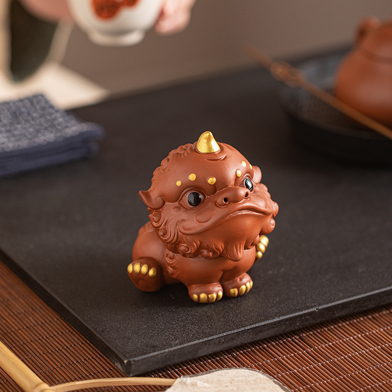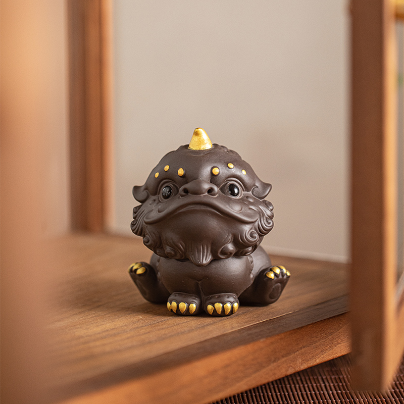 国潮醒狮紫砂家居摆件装饰品客厅玄关办公室茶室桌面摆设鱼缸造景