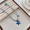 蓝色油画星星吊坠颈链手工编织绳锁骨链小众甜酷少女气质百搭项链