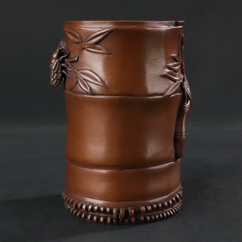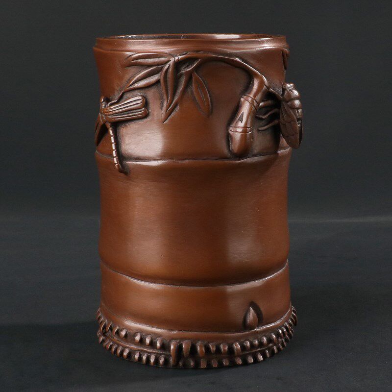 大仕缘 紫铜工艺品笔筒书房摆件商务办公送老师礼品文房蝉竹笔筒