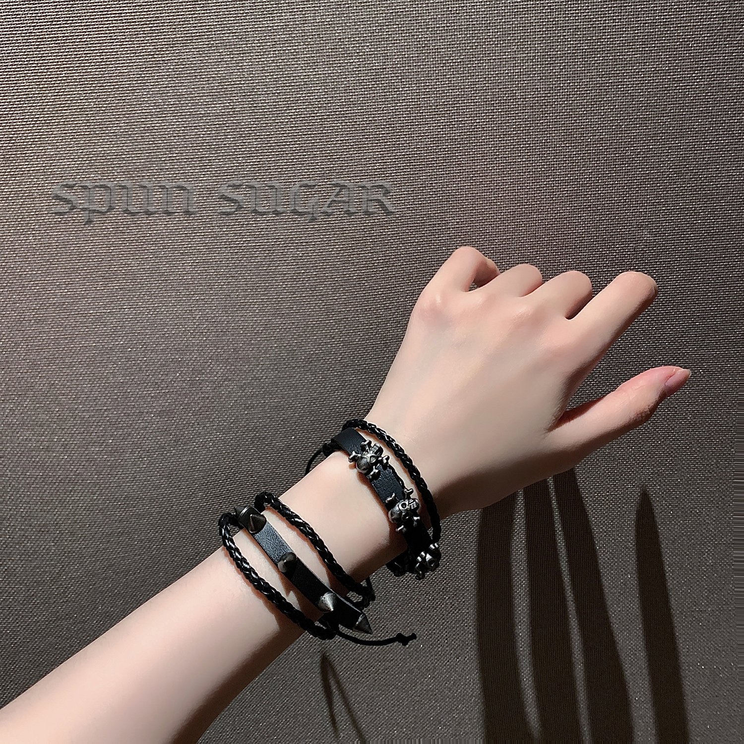 朋克摇滚多层串珠编织骷髅手链套装五件套超划算皮绳男女情侣手环