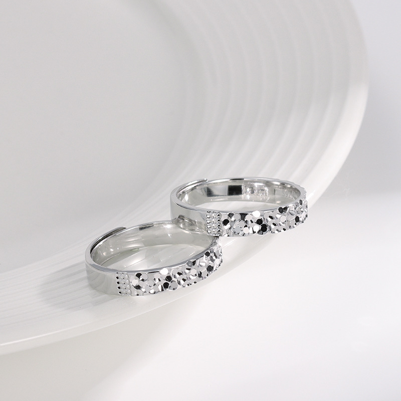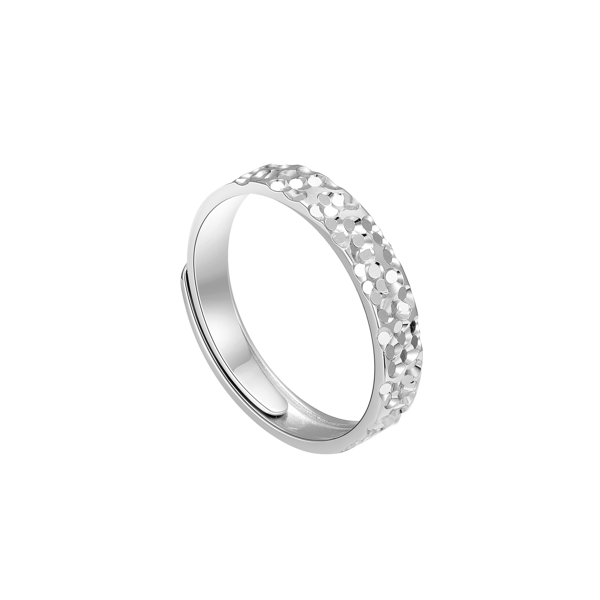 S925纯银碎冰冰开口调节戒指时尚简约通勤锤纹情侣巨划算饰品
