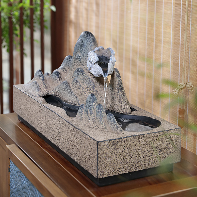 桌面流水摆件新中式客厅玄关办公室茶室山水装饰循环水景招财喷泉
