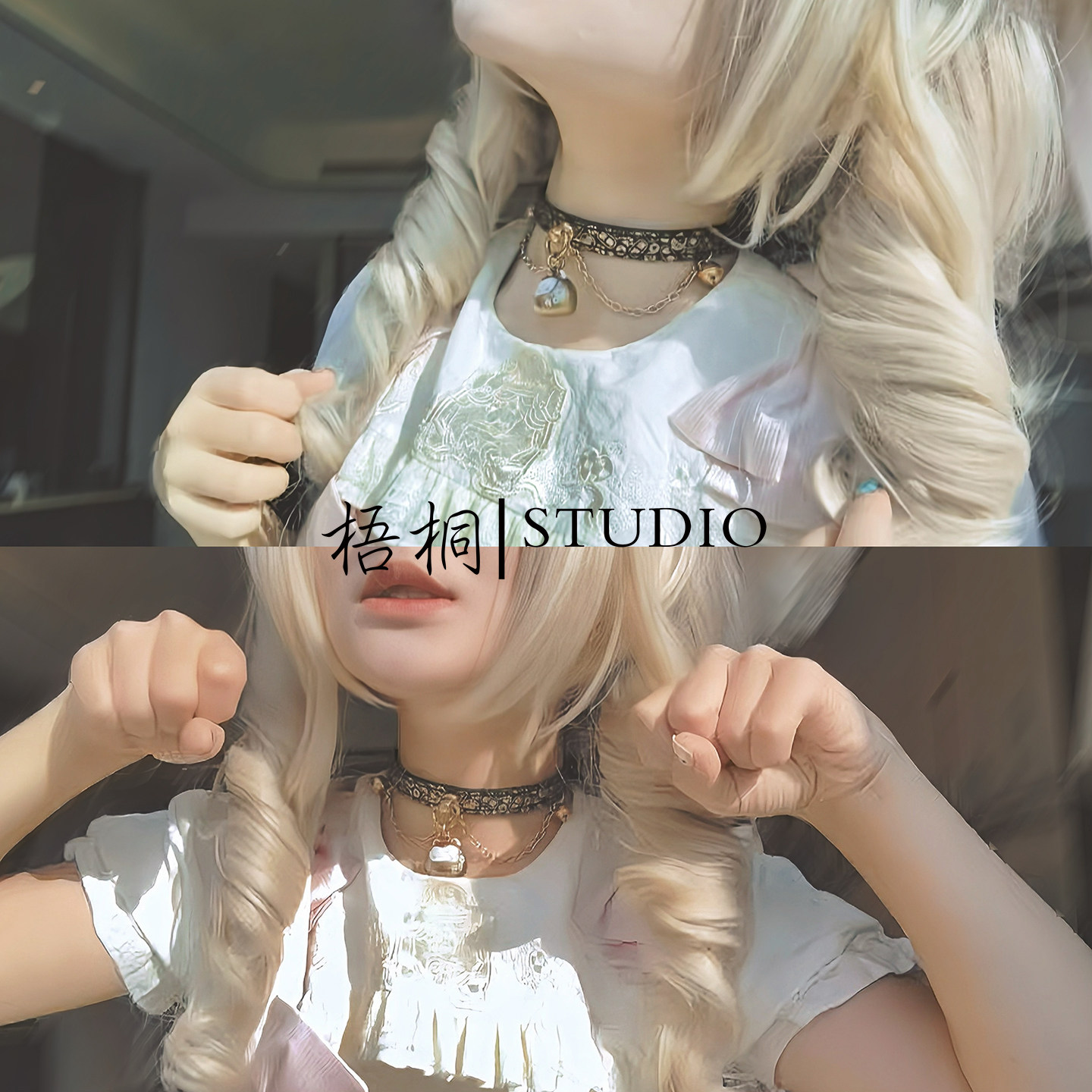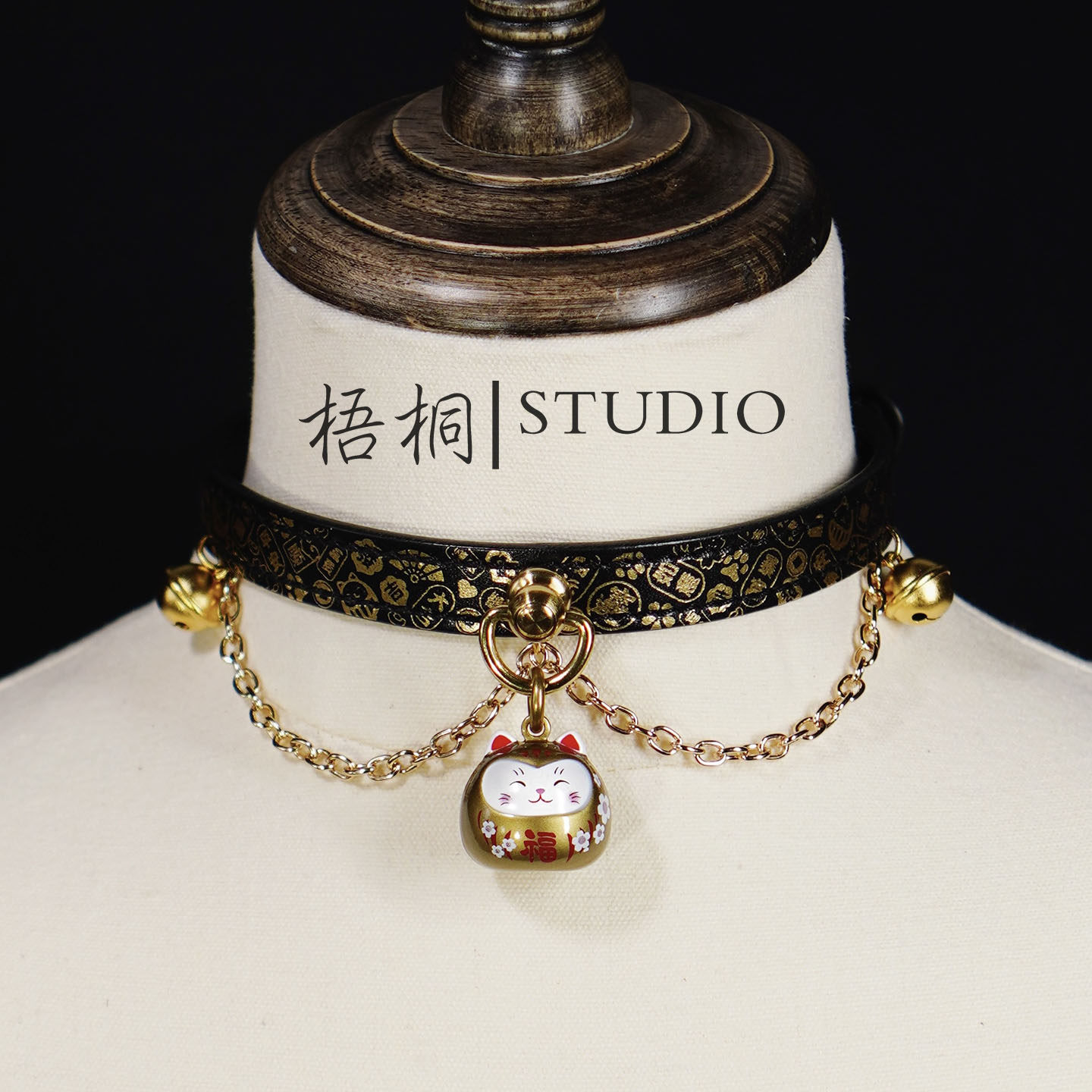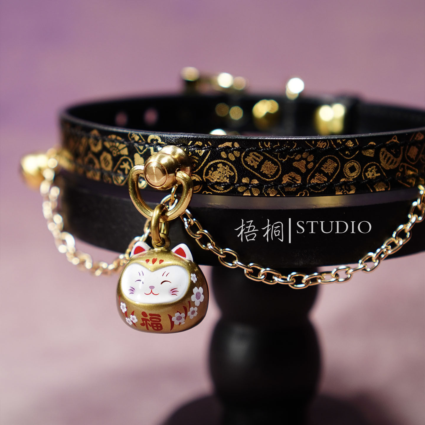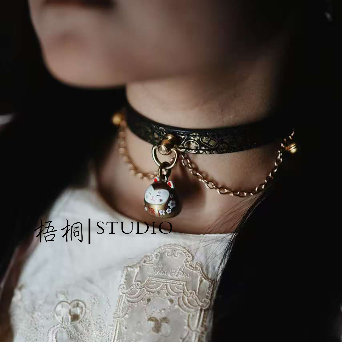 软萌轻情趣风吉言牛皮项圈黑色烫金洛丽塔亚文化涩系梧桐铃铛颈环