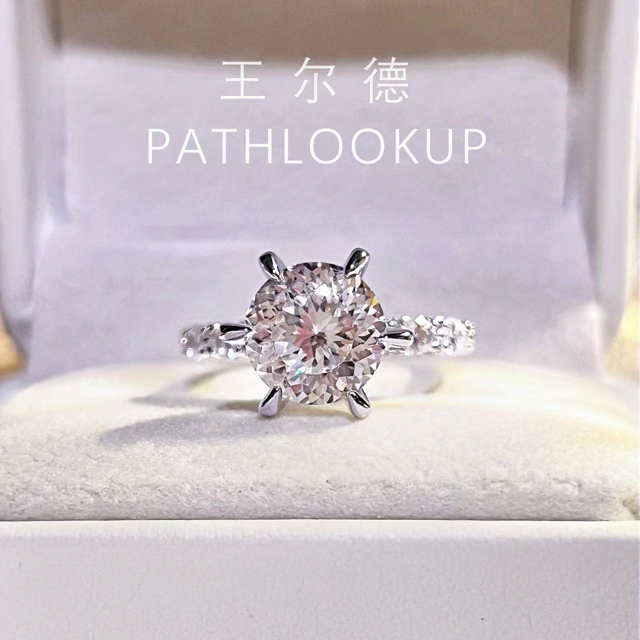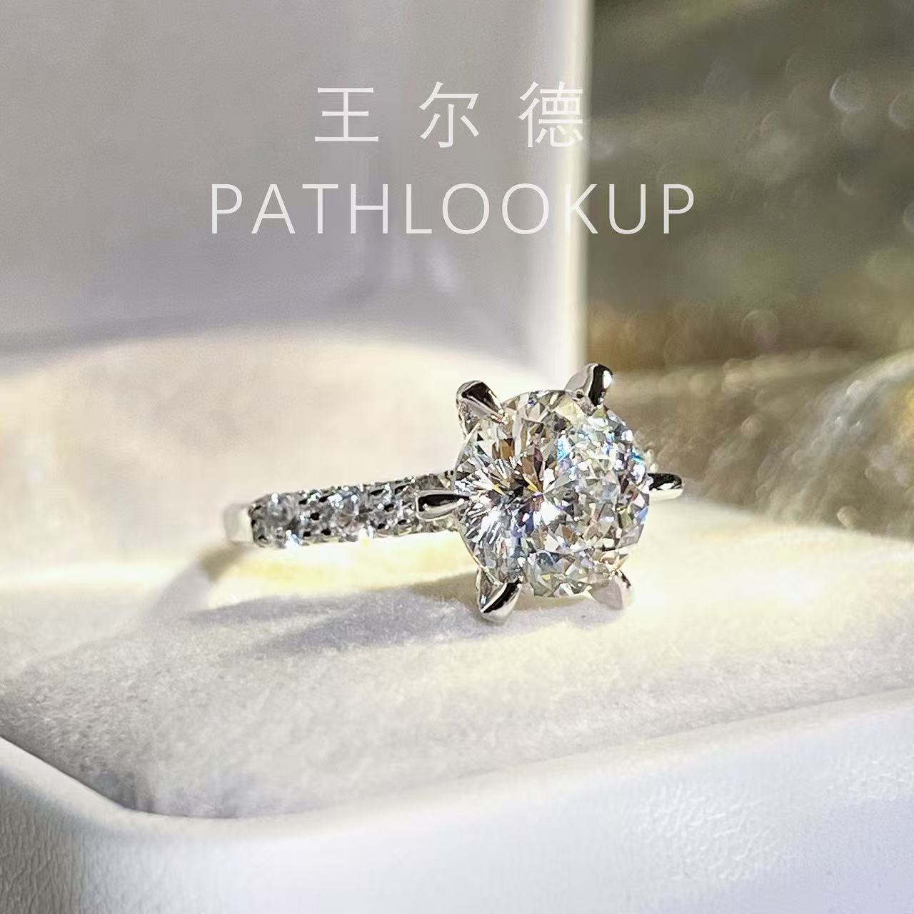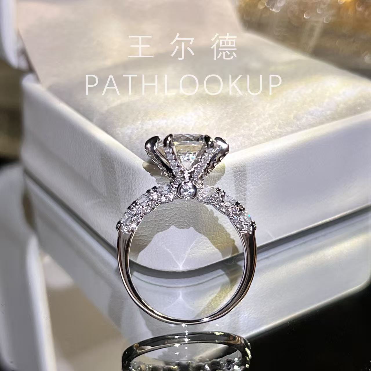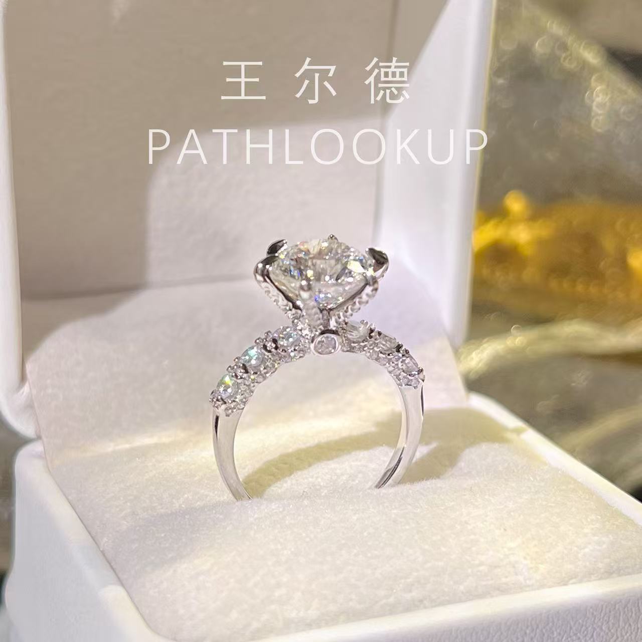 S925纯银爆闪烟花切六爪皇冠高碳钻戒指女豪奢满钻婚戒不掉色礼物