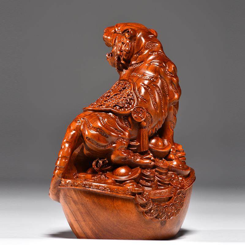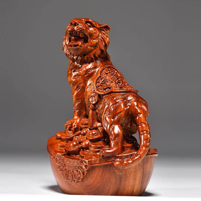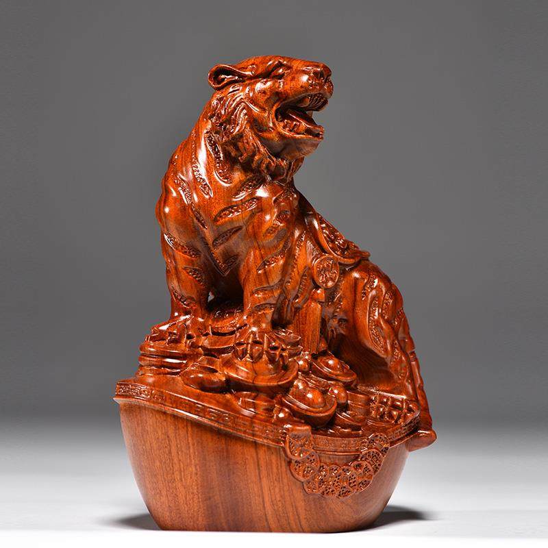 花梨木雕老虎摆件实木十二生肖上山木虎家居客厅办公装饰工艺礼品