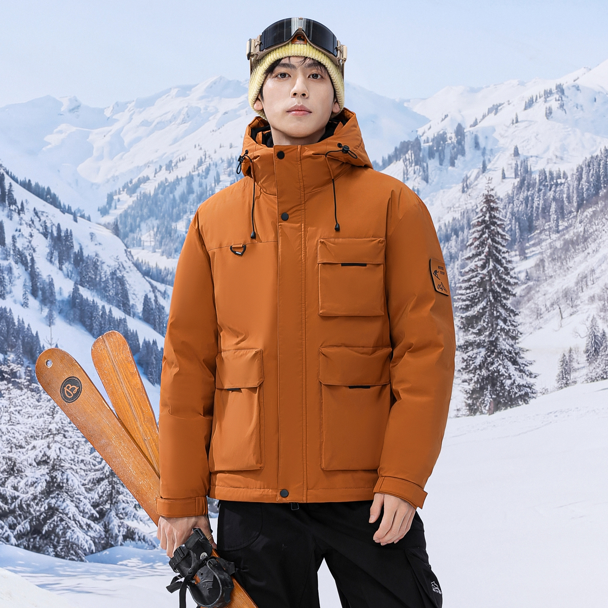 雪中飞2025冬新款男士短款羽绒服连帽保暖工装派克机能纯色百搭