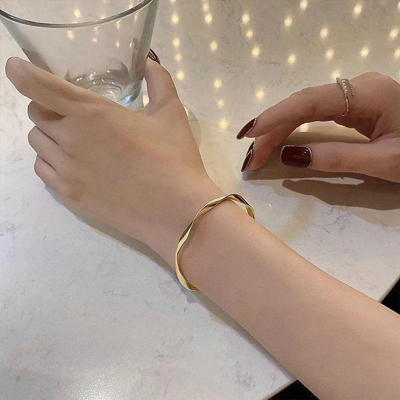 Fashion Opening Bangle Gold Color Glossy Twisted Thin Bangle