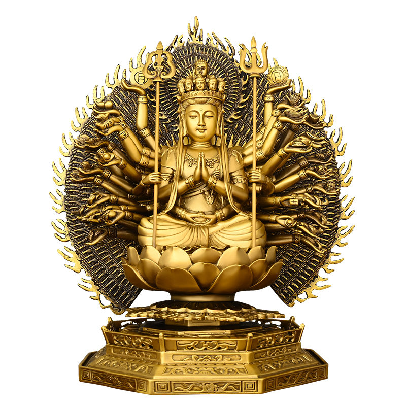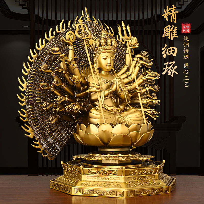铜千手观音摆件千手千眼观世音菩萨坐莲观音铜像大号家居工艺品