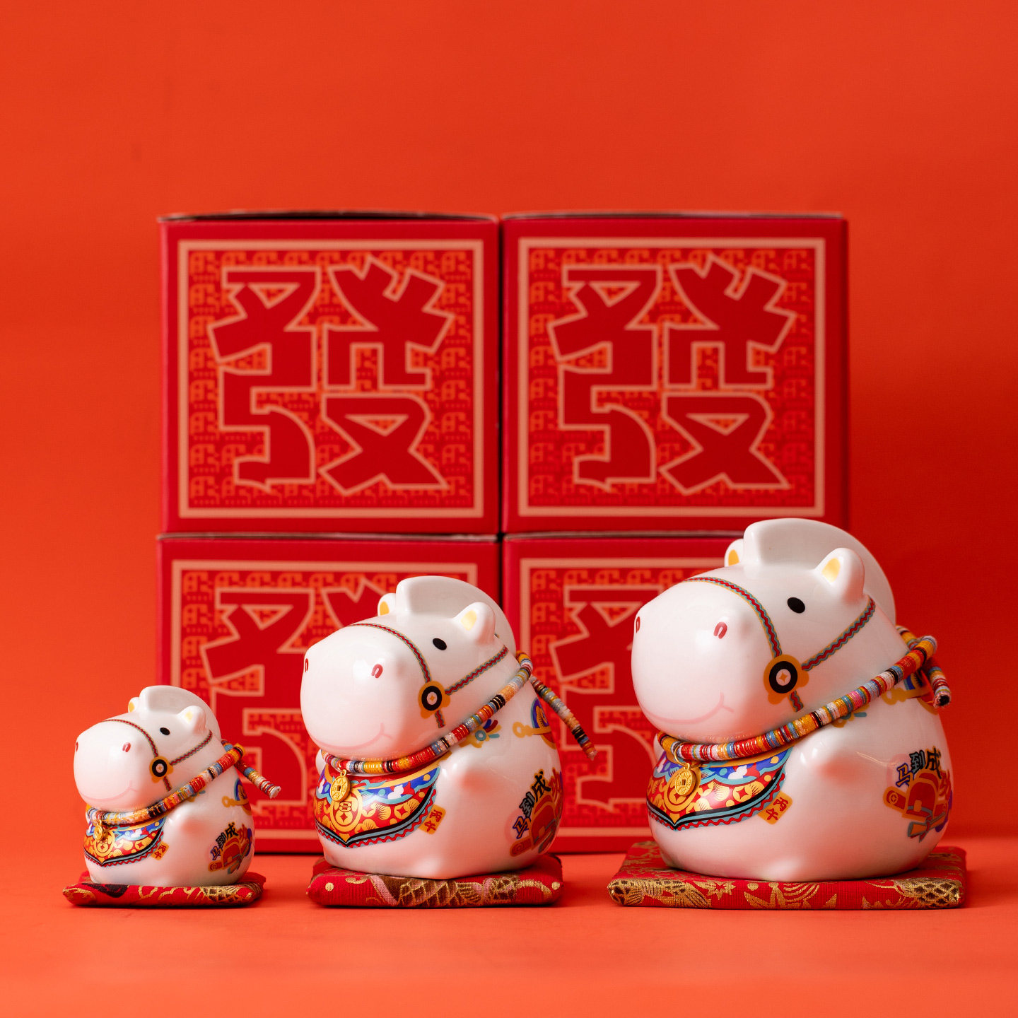 陶瓷马上发财吉祥物摆件送客户公司年会小礼品新年礼物马年伴手礼
