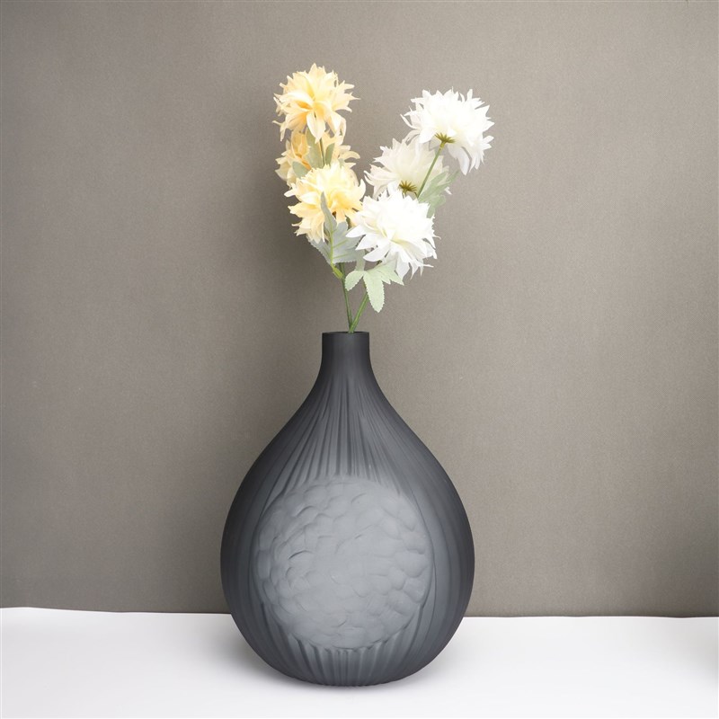 北欧创意灰色玻璃花器摆件样板房售楼部卧室书房客厅Y桌面玄关饰