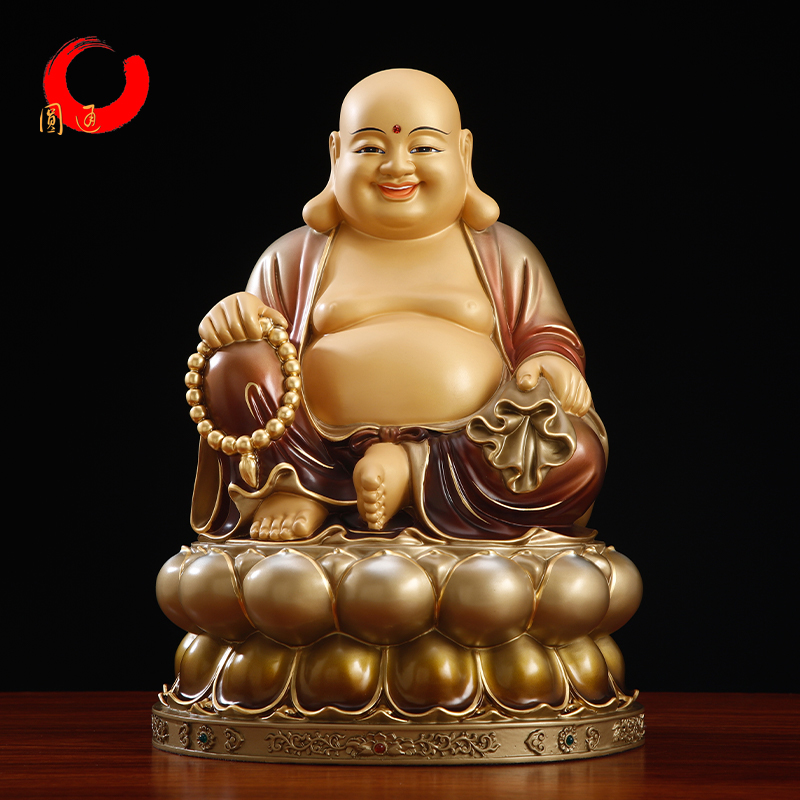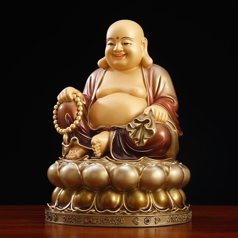 台湾纯铜彩绘弥勒佛菩萨大肚笑佛招财摆件家用供奉弥勒佛像未来佛